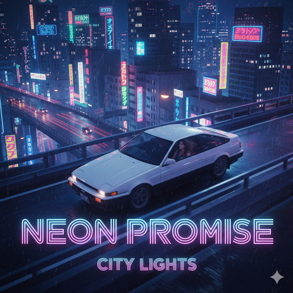 Description: A bright, driving track with a super catchy synth melody (like synth brass), Features huge gated reverb drums, a punchy slap bassline, and clean, romantic female vocals, The mood is hopeful, like a late-night drive through neon-lit Tokyo trying to catch a second chance at love