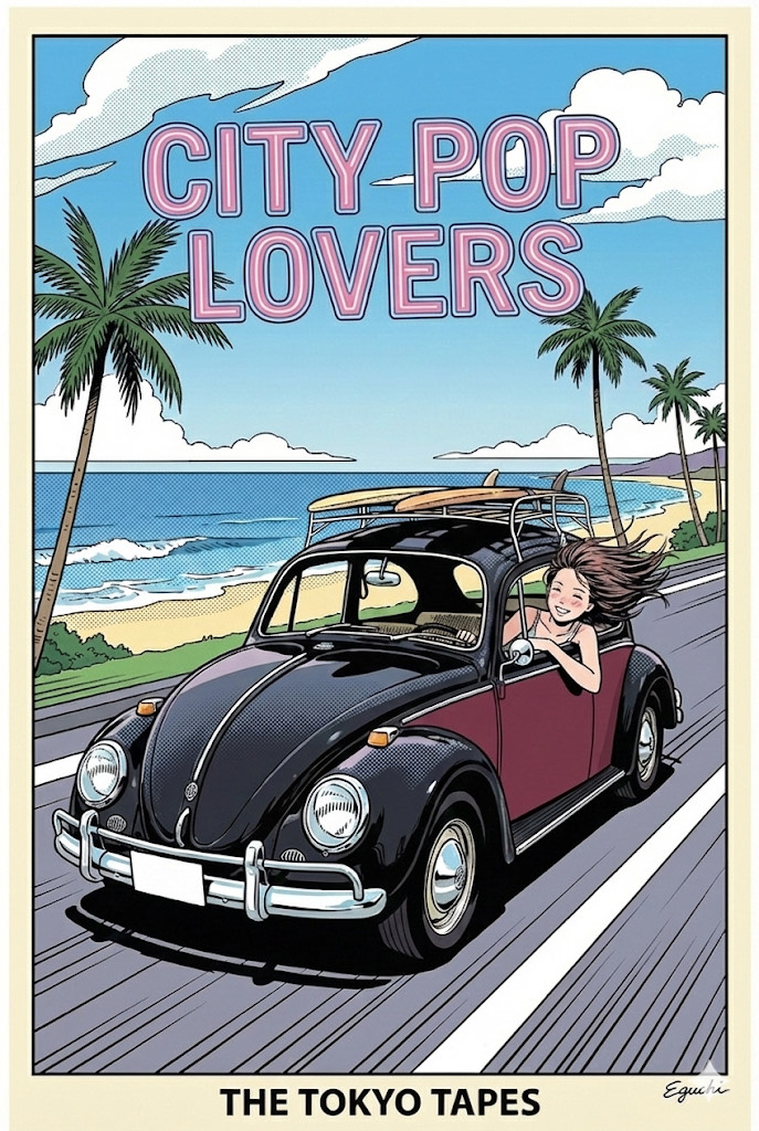 City Pop Reggae Fusion, 80s Japanese Pop, Sophisticated, Groovy, Urban, Mellow, Night Drive, Reggae Rhythm Section, Guitar, Deep Bassline, Fender Rhodes, Funky City Pop Riffs, Lush Synthesizers, Smooth Brass Section (Sax solo), Smooth Male Vocals (Japanese)