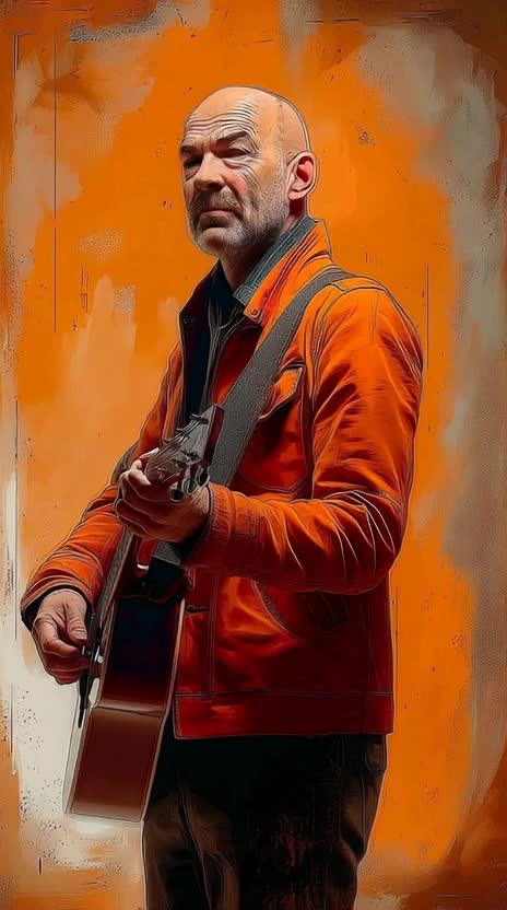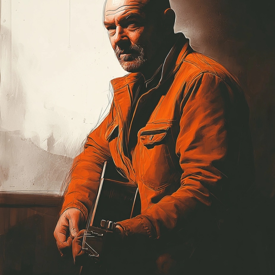 low male voice, sad syncopated funky acoustic guitar, choir, flute, bongos