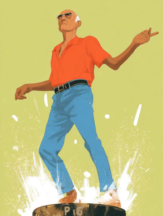 slap bass, syncopated acoustic funk blues guitar, choir, brass