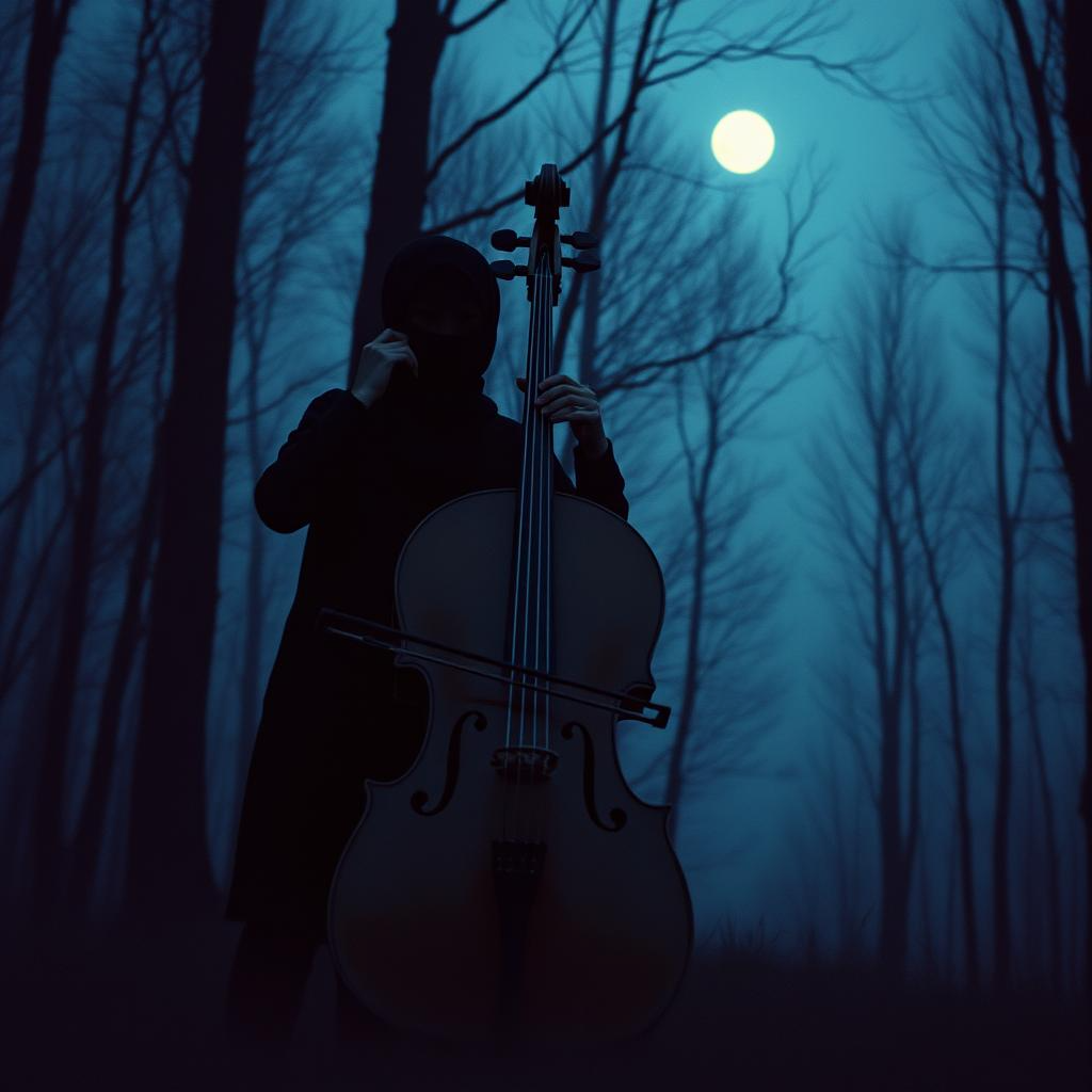 A melancholic and atmospheric piece featuring a prominent CELLO melody, supported by a string section and subtle percussion, The HARP plays a flowing, arpeggiated melody in a minor key, creating a sense of introspection and sadness, The strings provide a rich, sustained harmonic bed, with occasional counter-melodies, The tempo is slow, allowing the lyrics and harmonies to breathe and the emotional weight of the melody to fully develop, The overall production is clean and spacious, with a focus on the natural resonance of the vocals, The vocal phrasing is slow, straight metered with legato sustain notes at the end of the stanzas, reminiscent of a monk cantor, The reverb on the vocal is strong, The piece maintains a consistent mood throughout, building subtly in intensity with the addition of more string layers before receding gently, The voice is a tenor male with monastery time reverb, The vocal phrasing is slow, metered with legato sustain notes at the end of the stanzas, Cantor