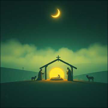 A warm, heartful Christmas cantata song featuring polyphonic choir parts from distinct male tenor, female alto, male bass, and female soprano voices, The orchestration is keeps a slow to medium flow of the storyline, A solo tenor male voice with a medium range tells the main storyline