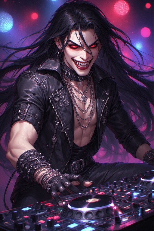 [Vocals] Deep male baritone vampire primary voice, female backup vocals, duet, evil laughter