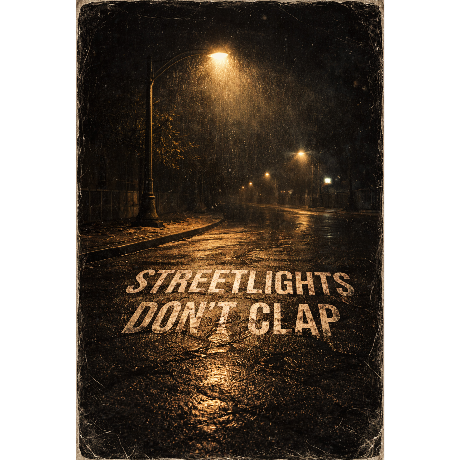 Cinematic Hip-Hop & Gritty Soul-Rap built around narrative intimacy and melodic replay, Tempo: ~84 BPM with a slow, walking pulse, Rain ambience and minimal piano open -> muted drums and warm bass enter under Verse 1 -> chorus arrives early with clear, hummable melodic contour and call-and-response backing vocals -> Verse 2 increases lyrical specificity -> bridge drops drums and lowers melody for contrast -> final chorus returns higher, wider, and more melodic with sustained vowels and delayed resolution -> outro strips back to rain decay and piano, Night-walk energy, Human, emotional, replay-driven, High Fidelity, Wide Stereo, Warm Analog Tube, Crisp Treble