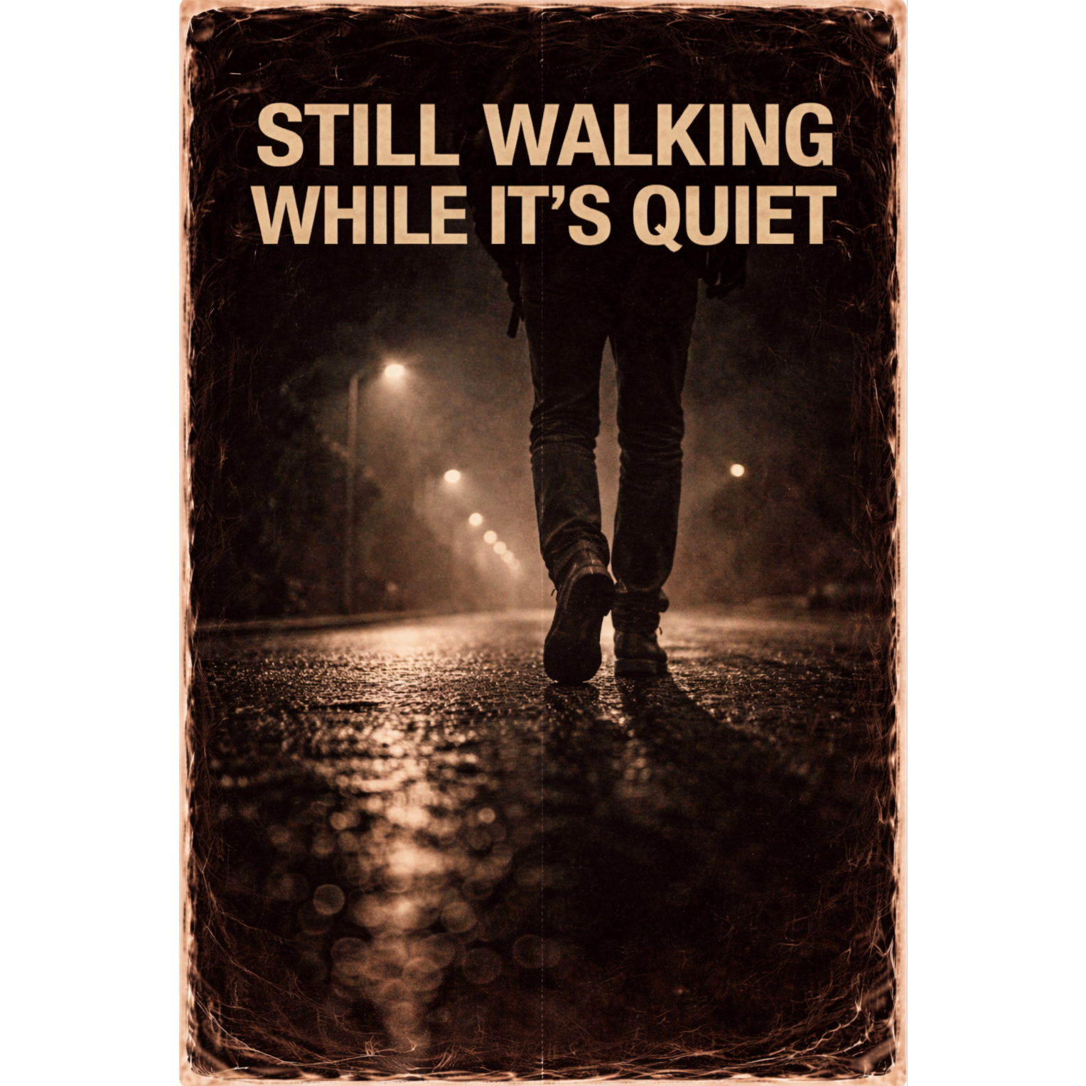Cinematic Hip-Hop & Minimal Soul-Rap focused on emotional isolation and quiet resolve, Tempo: ~86 BPM with an unhurried, reflective pulse, Sparse guitar and ambient textures open -> muted drums and warm bass enter for the verses -> chorus lifts with subtle pads, melodic vocal layering, and widened stereo -> bridge strips back to near-acapella for confessional tension -> final chorus returns slightly fuller, then fades to ambience and footsteps, Nighttime, street-level mix, No triumph, no dramatics—just persistence, High Fidelity, Wide Stereo, Warm Analog Tube, Crisp Treble, Ends calm, unresolved, continuing