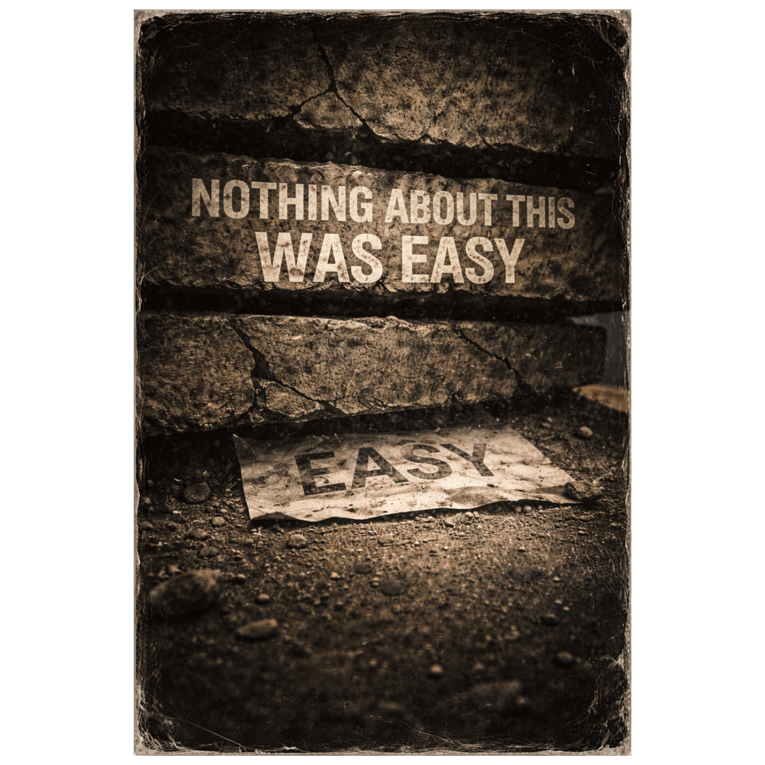 Gritty Cinematic Hip-Hop & Industrial Soul-Rap rooted in physical pressure and endurance, Tempo: ~90 BPM with a grounded, weighty pulse, Sub-bass and low drones open with breath-like textures -> drums enter tight and heavy under the first verse -> chorus expands with distorted pads, sustained melody, and wide stereo vocals -> bridge collapses instrumentation to isolate the voice -> final chorus returns thicker and more expansive, then strips down to piano and low-end residue, Dark, dense, earthbound mix, Avoid uplift, Focus on mass, gravity, and controlled force, High Fidelity, Deep Bass, Wide Stereo, Warm Analog Tube, Ends grounded, not resolved
