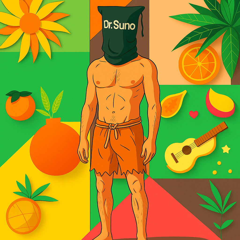 The track fuses experimental electronic and glitchcore textures with tropical funk, mento, and happy reggae, A dembow dominicano drumset underpins pop-rock guitars, lo-fi synths, funky hi-hats, and echoed violas, Glitchy, catchy male vocals in Jamaican Patois weave through hyperpop-reggae harmonies, boosted by playful vocal SFX, lush synth melodies, and a vibrant, high-fidelity mix