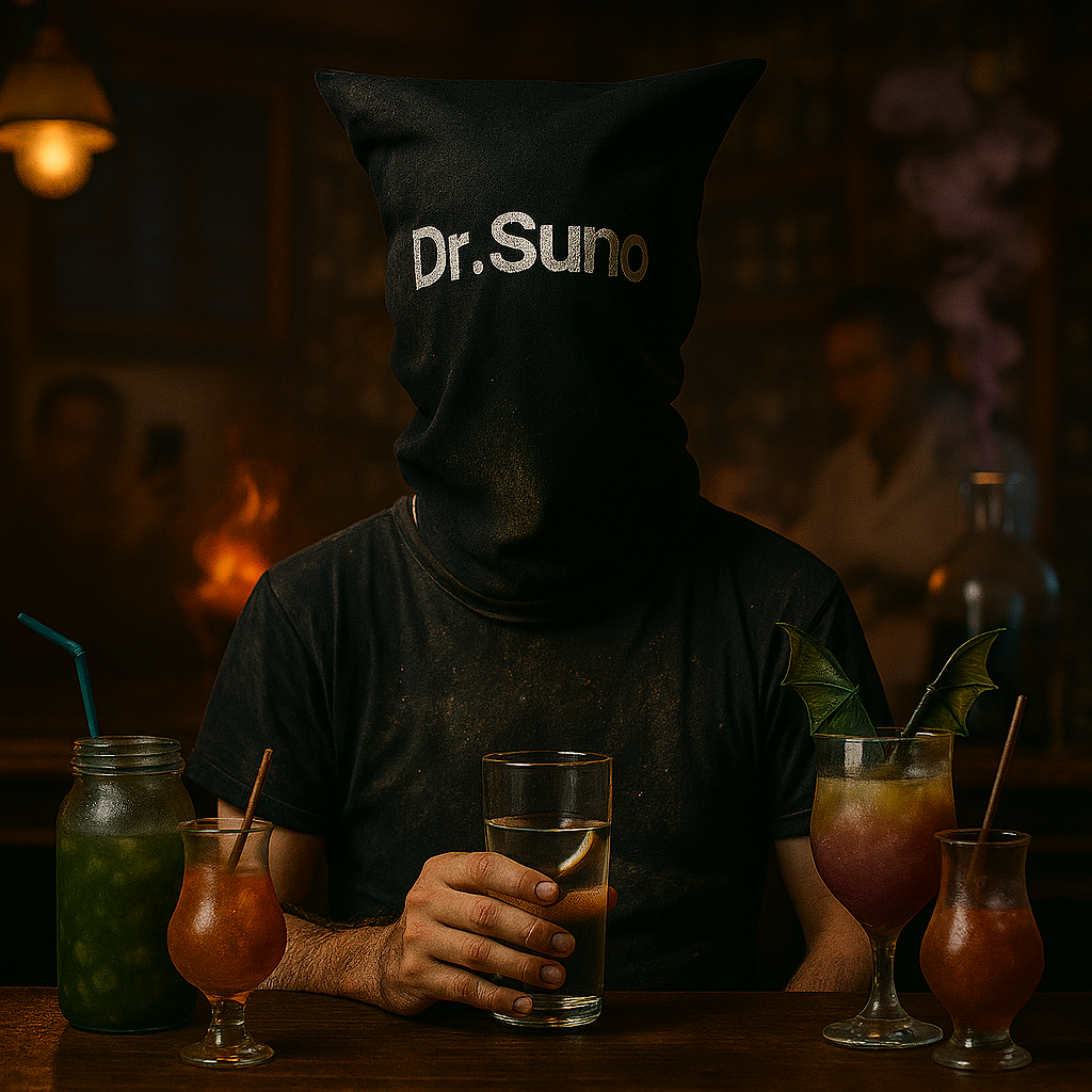 Dr, Suno, ‑Darkwave Reggae Dubstep Rhythms, ‑Wobble Bass, ‑Haunting Synths, ‑Dubby Drums, ‑Spacey Echoes Reverb, ‑male scratching voice FX, ‑melodie, ‑cinematic atmosphärisch, ‑128 BPM
