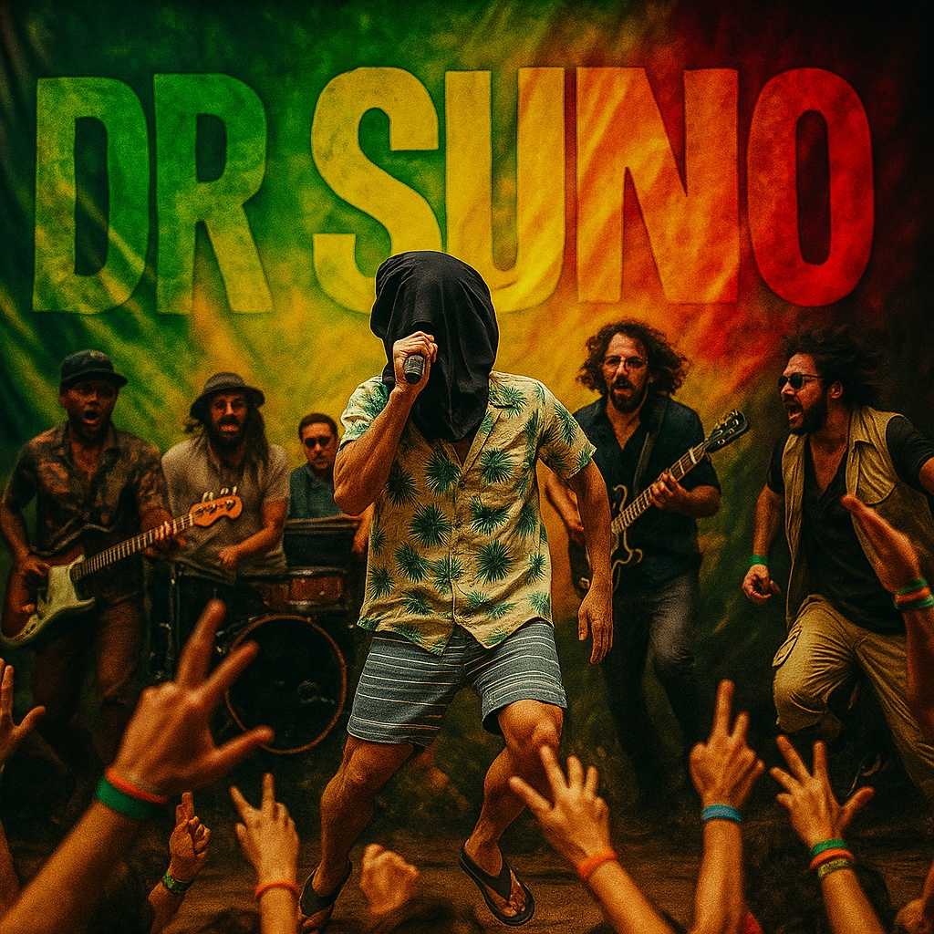 Dr, Suno, Rap, Reggae-Pop, 100BPM, live konzert [unplugged], elektronische Technomrlodie, männliche Stimme, Crowd-Singalong, TR-808, ambiente SFX, Retrofuturistic wah keyboard, smooth southern male vocals, trumpets, syncopated beat, polyphonic rhythm, groovy as all get out, French-style funky