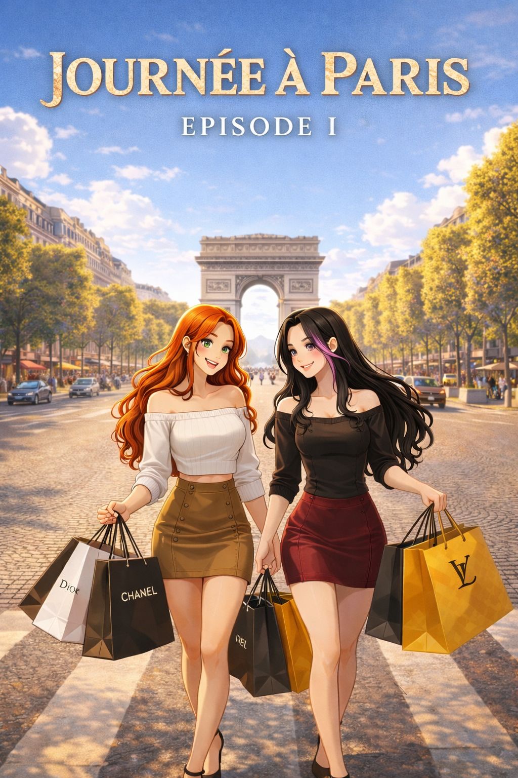 Modern Parisian pop jazz track with a strong sense of movement and personality, Medium upbeat tempo, lively and playful, Sunny summer day in Paris, shopping, walking fast, laughing, light chaos and freedom, Jazz foundation with violin riffs, upright bass groove, swinging piano chords, Add modern electro elements: subtle synth hooks, playful electronic pulses, light filtered beats, small rhythmic drops to create surprise and lift, Chic Montmartre vibe with a contemporary twist, Not slow, not cheesy, not overly romantic, Bright, witty, stylish and slightly mischievous, Catchy and very singable melody, Female vocal, warm and expressive, smiling, confident, modern, Feeling of a city in motion, fashion energy, joy, sparkle and effortless cool