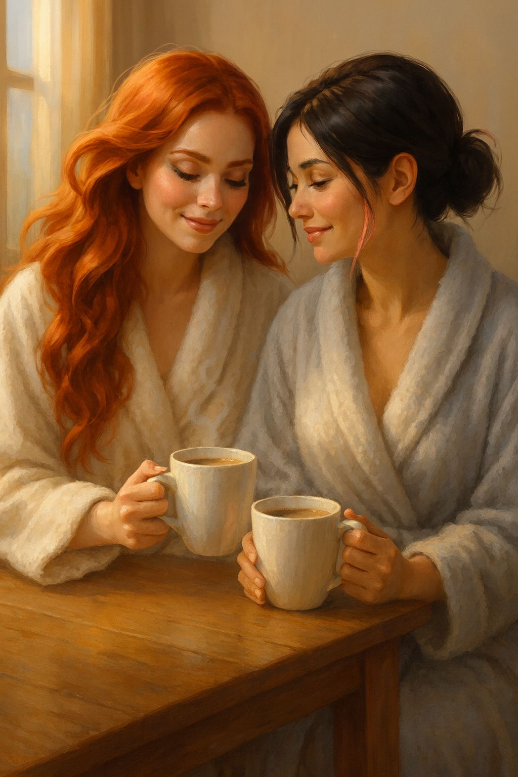 Slow-burn sensual pop / alt-R&B track, Tempo slow to mid-slow, intimate groove, Two female voices, close and intertwined, Lead vocal: warm, suave, slightly raspy, breathy, confident, Second vocal: softer, airy, intimate harmonies, sometimes whisper-close, Mood: sensual, magnetic, skin-close heat, restrained desire, Production: deep bass pulse, soft pads, subtle heartbeat rhythm, minimal percussion, silky synth textures, Vocals feel recorded very close to the mic, audible breaths, gentle sighs between lines, Emotion: longing, physical pull, quiet hunger, no rush, no fear, just heat, Chorus should linger in the listener’s mind, addictive and slow-burning, No aggression, no explicit language, Atmosphere like a warm night, shadows, bodies close, tension rising, Overall feeling: elegant, intimate, unforgettable, making cheeks flush and thoughts wander