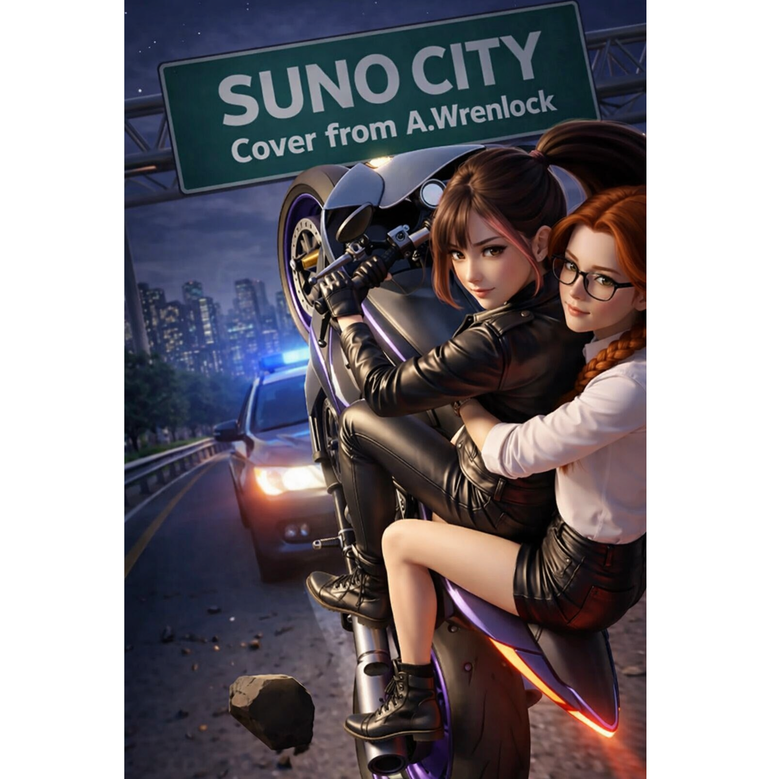 High-speed cinematic electro action track, driving and urgent, fast BPM 148–155, Strong female lead vocal with rhythmic and punchy delivery, Heavy taiko drums used as a steady driving pulse, combined with modern electronic drums, Continuous percussive groove, tight and repetitive, creating a sensation of acceleration, Deep bass engine rumble synced to rhythm, Short aggressive synth hits and rhythmic stabs, Minimal melodic layers focused on rhythm and energy, Action chase sound design inspired by truck engines, tire friction, rapid movement, siren textures blended into percussion, Clear structure with fast verse flow, rising tension build, explosive chorus designed for adrenaline visuals, Second half intensifies speed with helicopter rotor rhythm merged into beat, Mood: urgency, velocity, obsession, reckless love, race against time