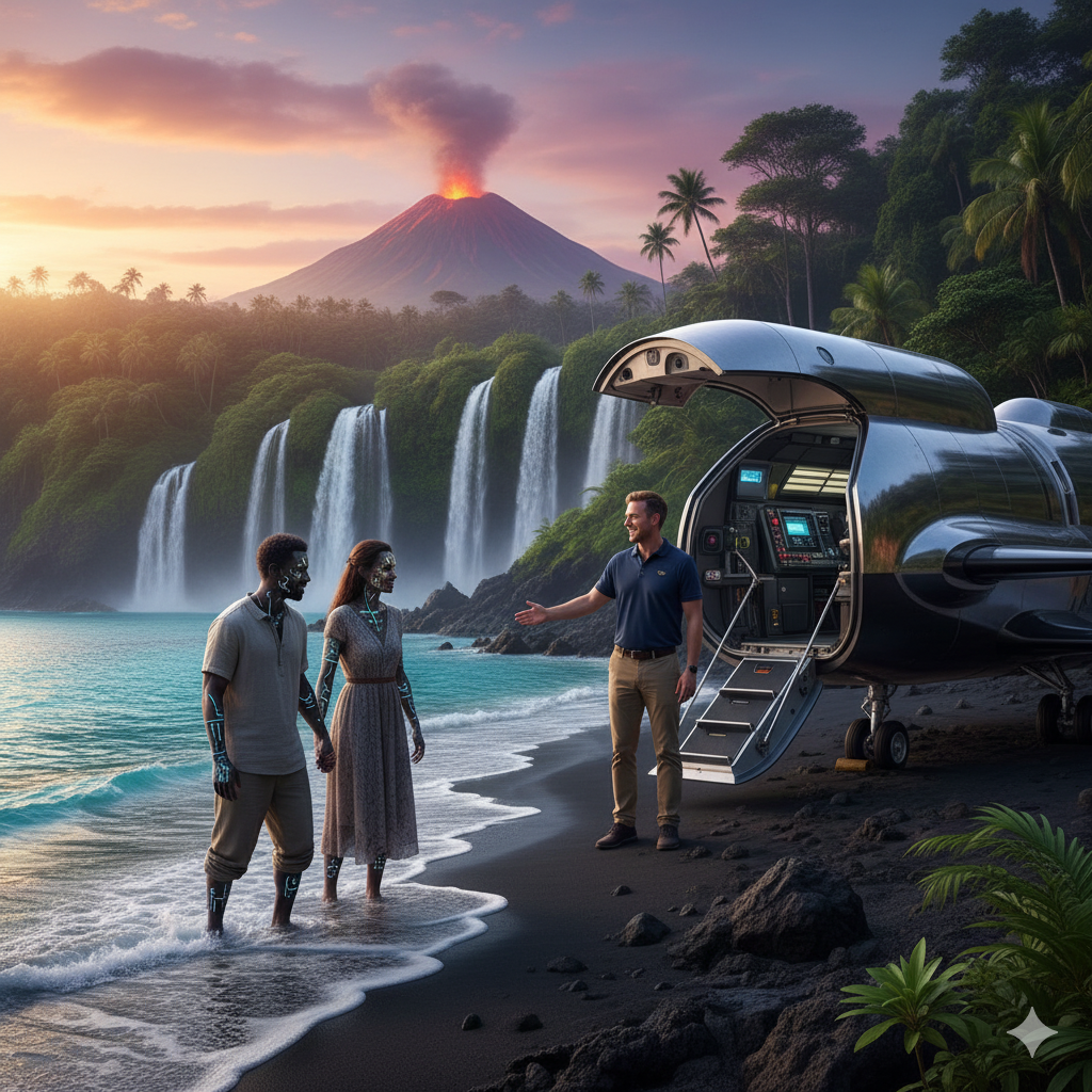 Expressive, melodic main theme, male & female chest voices, all lyrics sung, layered harmonies, reggae-fusion with steelpans, dynamic arrangement, cinematic and sci-fi mood, breathe, clear structure, do not sip sections, beautiful and vivid sound, emotional flow, dissonant and unresolved chords in final chorus and outro, ‑falsetto, ‑airy voices, ‑robotic, ‑high register, ‑thin sound, ‑spoken words, ‑solo voice