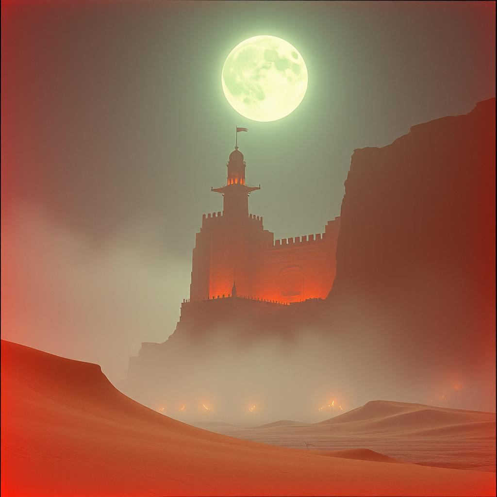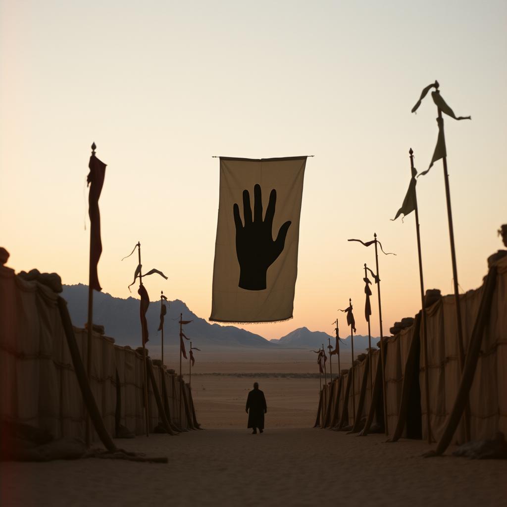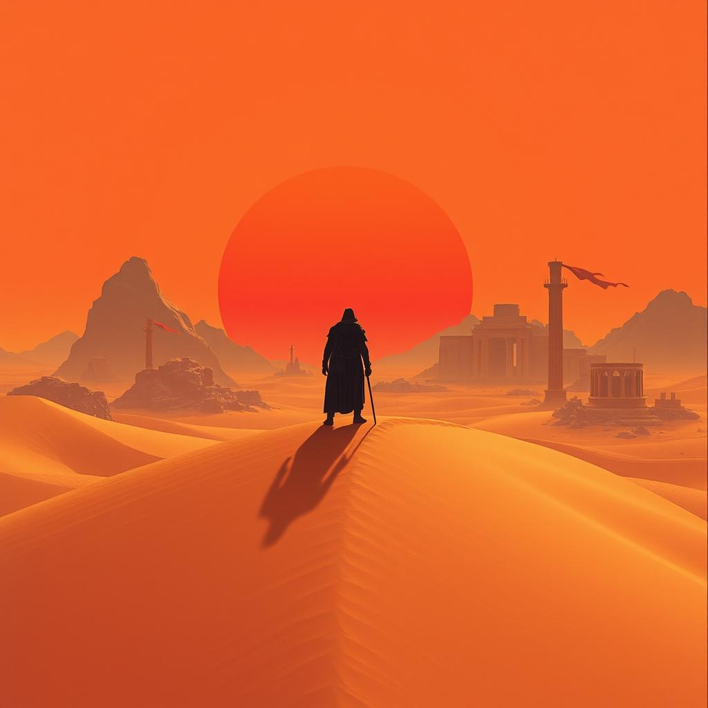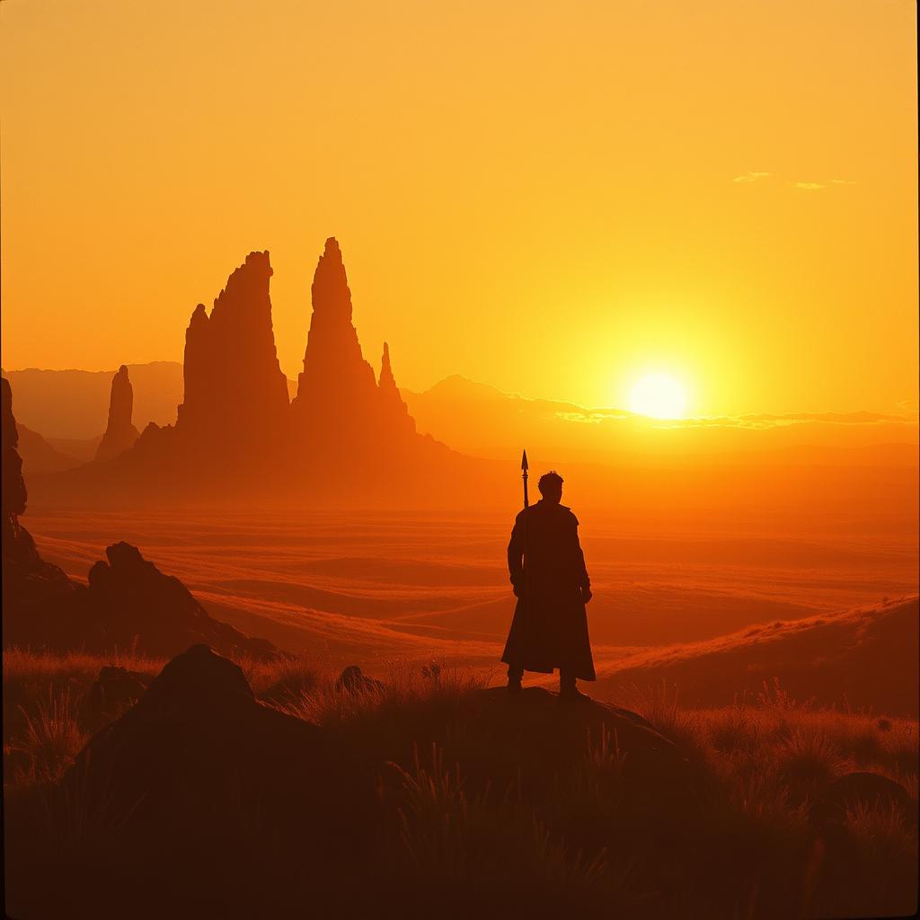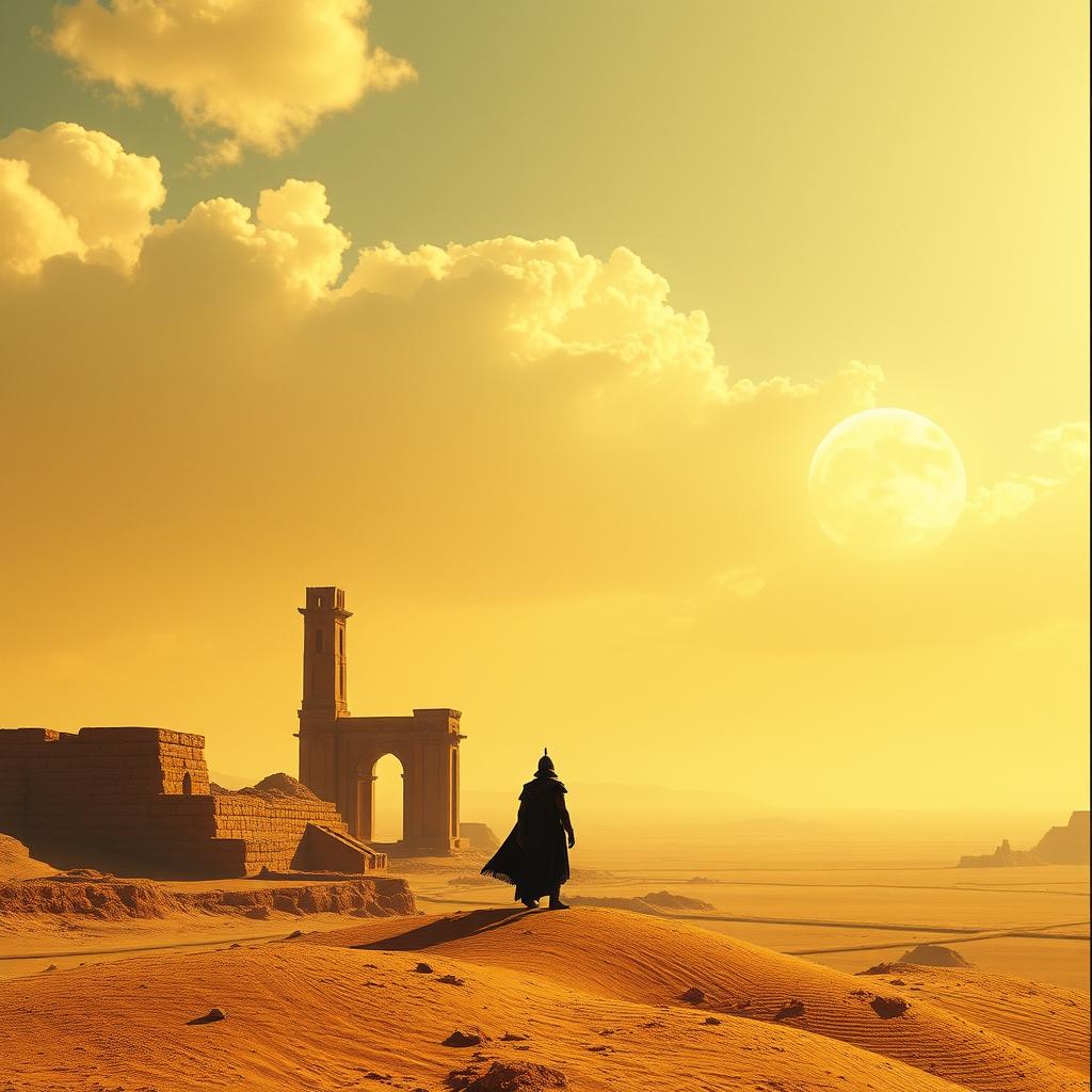 Fantasy barbarian RPG ambient soundtrack, atmospheric and immersive, tense but calm, evocative of wild landscapes and ancient ruins, cinematic textures, slow-to-medium tempo, natural and raw, strong Arabic and Oriental influences, soft ritualistic motif, mythic conan-inspired motifs, gradual cinematic movement, ancient ritual melodic line, soft cinematic layering, haunting wilderness solitude, warm primitive harmonic sheen, slow evolving cycle, primitive ambient soundscapes, barbarian legend-inspired melodies, war horn, mythic-inspired ornamentation, calm ambient rise, fluid transitions between textures, jaw harp, monochord