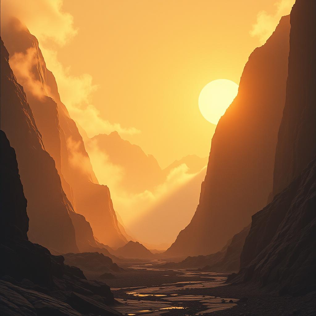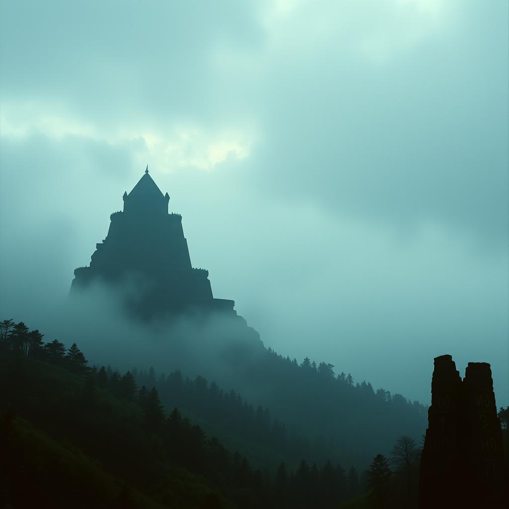 Epic fantasy barbarian RPG ambient soundtrack, atmospheric and immersive, tense but calm, evocative of wild landscapes and ancient ruins, cinematic textures, slow-to-medium tempo, natural and raw, subtle Arabic and Oriental influences, soft northern wind undertone, early sword-and-sorcery lineage, fog-covered canyon, slow ambient pulse, ethereal wandering melody, alternating atmospheric motifs, misty primeval forest, brief reflective pause, quiet ambient space, warm natural resonance, psaltery, subtle distant motif, slow evolving environmental layers, quiet contemplative closure, subtle echoing horizon, sparse uncluttered layering