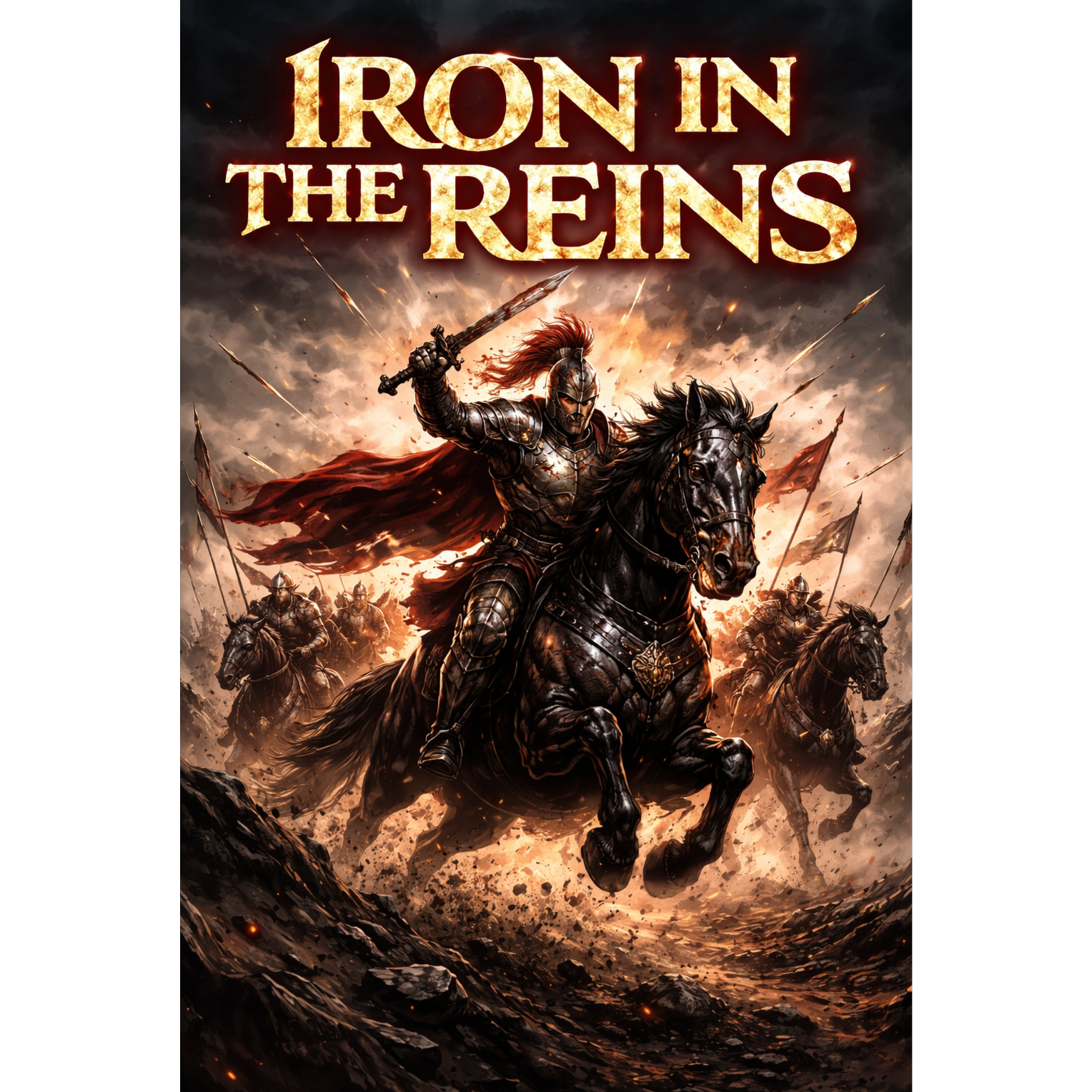 Power metal, 185-195 BPM, E minor with brief Dorian lifts, tight double-kick gallop, modern punchy drums, bright but controlled cymbals, aggressive rhythm guitars with razor palm-muted 16ths and pedal-tone riffs, frequent fast pick scrapes and stop-start chugs, lead guitars: melodic hooks between vocal lines, harmonized twin leads in 3rds and 6ths, neoclassical runs and short sweep bursts that resolve into a memorable motif, bass locked to kick with occasional climbing fills into transitions, Intro uses sparse war-horn hit and distant hoofbeat foley for 2 bars, then full band slam-in, Vocals: soaring clean tenor with grit on peaks, tight stacked harmonies in chorus, gang-shout accents on key phrases, clear diction, Arrangement: cold open hook, Verse 1, Pre, Chorus, Verse 2, Pre, Chorus, Bridge with halftime stomp and spoken vow, long guitar solo trade-off (melodic then shred climax), final chorus double with higher harmony lift, hard ending on choked hit, Mix: wide guitars, mono lowend