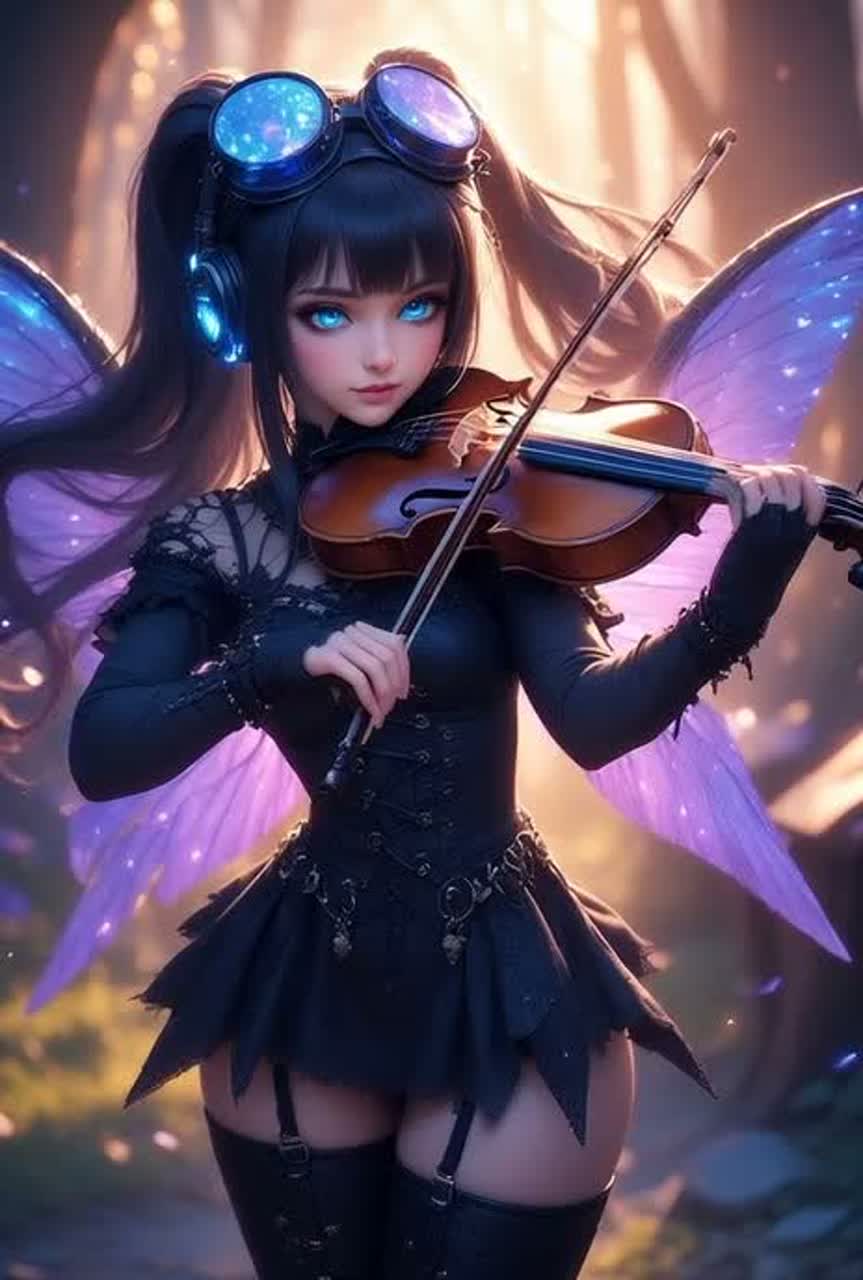 Epic symphonic EDM with virtuosic electric violin as dominant lead instrument, Blends neoclassical melodic dubstep elements with anime energy and Emocore, [Instruments: Electric violin leads with rapid runs and virtuosic passages, String orchestra as harmonic foundation, Heavy halftime drops with slow drums, Deep sub bass with rhythmic stops, Arpeggiated synths with sidechain compression]
