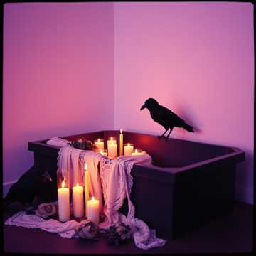 Gothic power ballad in A minor, 6/8 time, 65 BPM, Baritone male vocals, Prominent harpsichord layered with clean chorus guitar, sustained synth pads, and deep sub bass, Minimal drum kit: kick, floor tom, and brushed snare, Mood is romantic, theatrical, and brooding with subtle camp, Use natural minor mode with occasional chromatic motion, Dark cabaret meets gothic rock ballad