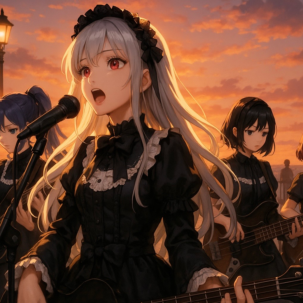 Production Notes: Japanese lyrics, wide stereo mix, heavy guitar tone balanced with lush orchestral layers, dramatic dynamic shifts between soft verses and heavy choruses