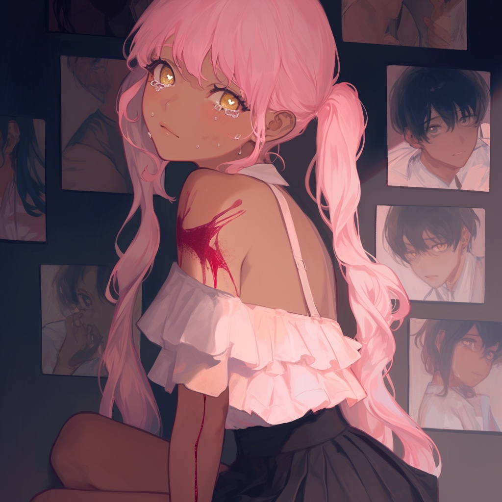 Yandere, CRAZY, groomy vibes, sad song, hate, soft synths, voices in the backgroud, echoes, deep female voice, expresive vocals