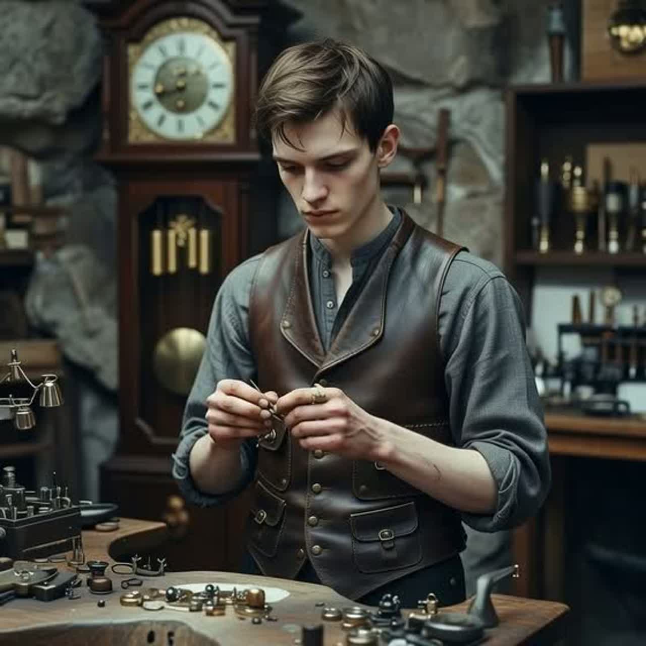 Opening with a sweeping cinematic orchestra set at moderato tempo, ambient strings and woodwinds meld with subtle clock gear percussion and pendulum rhythm, creating calm mechanical undercurrents, Boy falsetto and man bass-baritone trade gentle melodic lines, then unite in a luminous duet