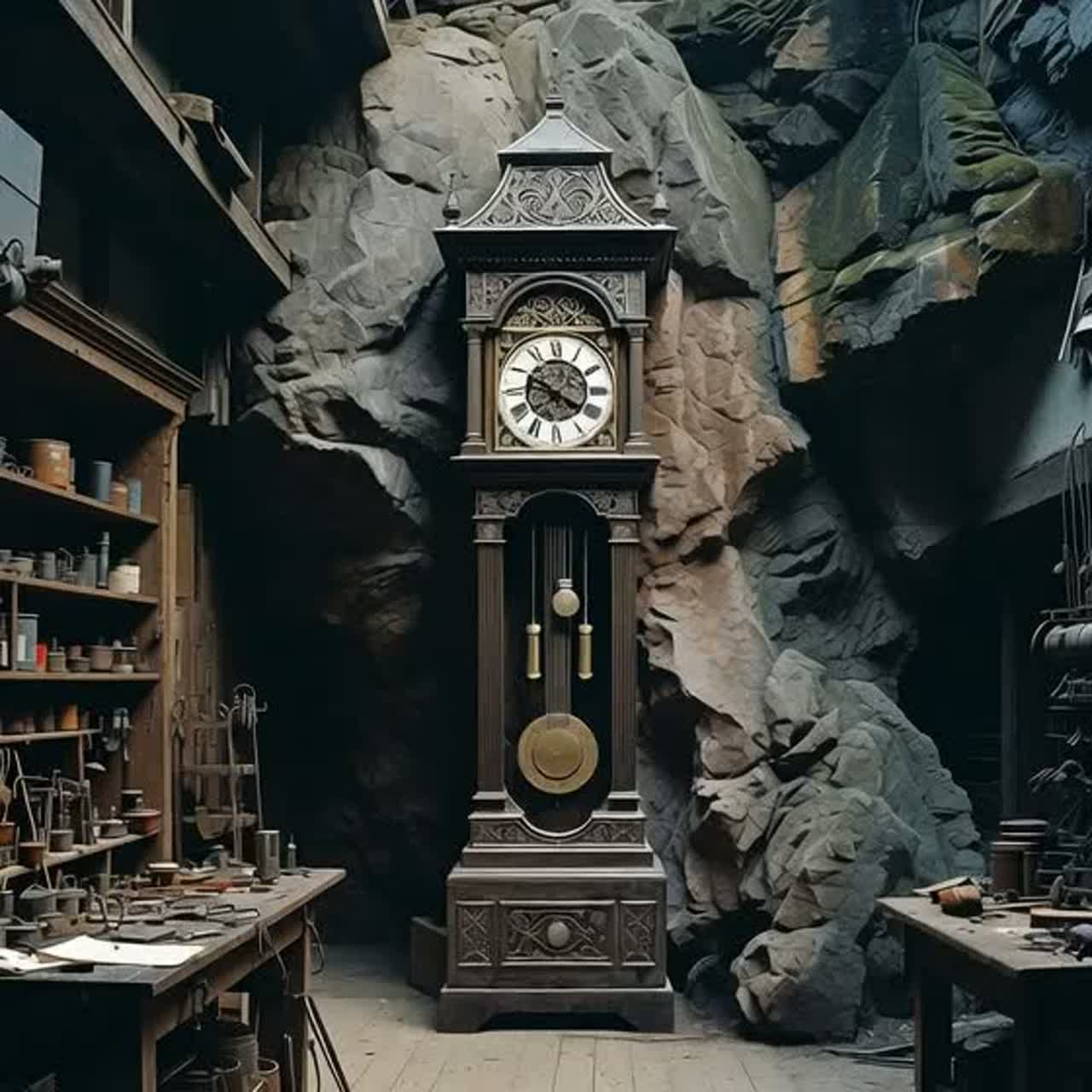 bach-inspiring moderato symphony, cinematic orchestra, ambient calm worryingly, slow mechanical clock gears percussions, pendulum, background music, narrator spoken words