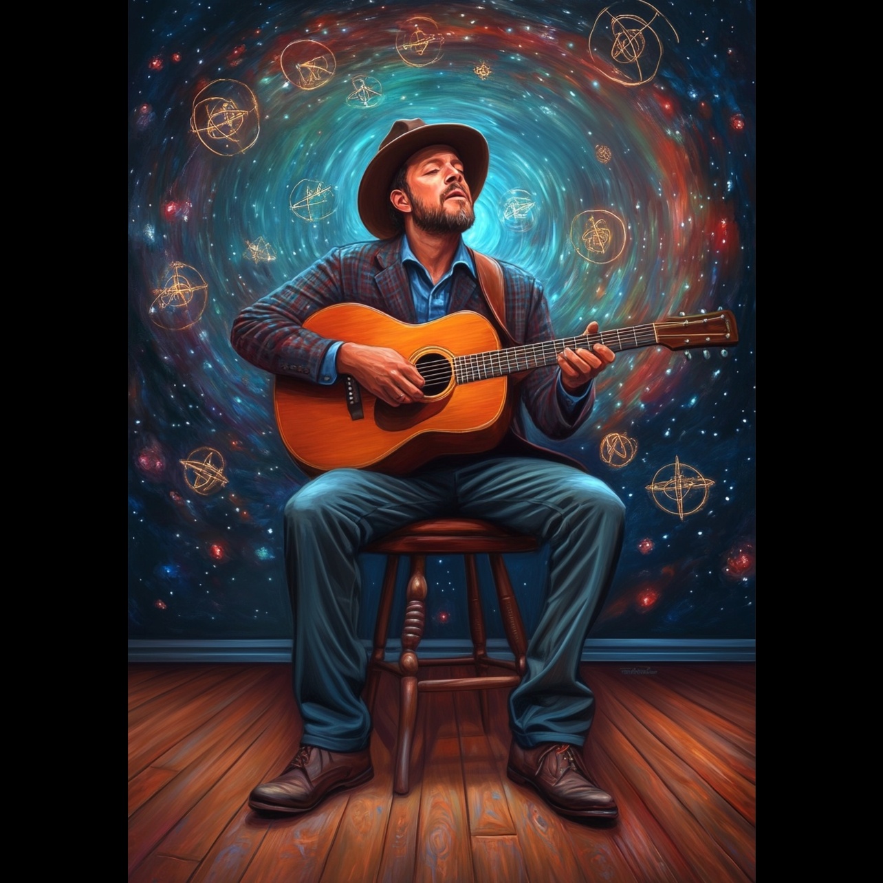 storytelling folk, fingerpicked acoustic guitar, warm baritone vocals, narrative lyrics, gentle bass, character-driven, conversational delivery, working-class tales, country folk, 6/8 time