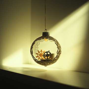 This through-composed finale evolves gradually, opening with celesta and music-box patterns interlaced with pizzicato strings and subtle breathy choir, Layers of heartbeat subs and gear-click pulses establish steady, inevitable motion, House room tone, ceramic cracks, chain tension, rimclicks, and low echoing stomps provide tactile sound design, Filtered djent chug guitars float like phantom breaths, building presence without overwhelming, The female vocal moves from calm melody to soft spoken lines, supported by airy choral textures, Heavy metal elements surface, measured and supportive, retaining ceremonial constraint, The arrangement continuously gathers and interlocks motifs, progressing from delicate textures to a resolute, grounded finish