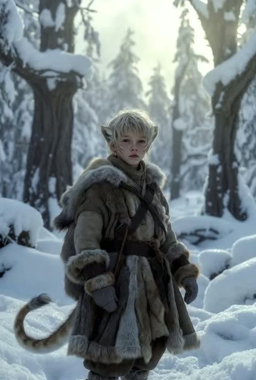 Create a cinematic, mystical fantasy track inspired by the atmosphere of Narnia, Nordic mythology, and enchanted winter forests, Use dramatic orchestral elements: deep icy strings, haunting choirs, resonant horns, and distant taiko drums, Add subtle ethereal pads, shimmering glacial textures, and faint magical chimes to create wonder and mystery, The tone should be cold, majestic, and otherworldly, with slow-building tension and emotional peaks, Vocals should feel storytelling, ancient, slightly echoing, as if sung in a frozen mythical land, Keep the arrangement immersive, atmospheric, and fantasy-driven, with heroic yet melancholic undertones, The music should evoke enchanted gateways, snowy landscapes, unseen creatures, and the awakening of old magic