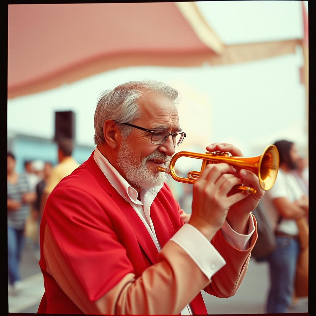 Upbeat jazz-pop fusion with samba-infused rhythms, male melancholy lead vocals with energetic and cheerful delivery throughout the song, non-espressivo style for a straightforward feel, ostinato patterns in the bass and rhythms, trumpet as the lead instrument featuring lively solos, groovy bass lines, swinging rhythms blended with samba grooves, festive brass ensemble, whistle accents, danceable pop hooks, 130 - 150 BPM