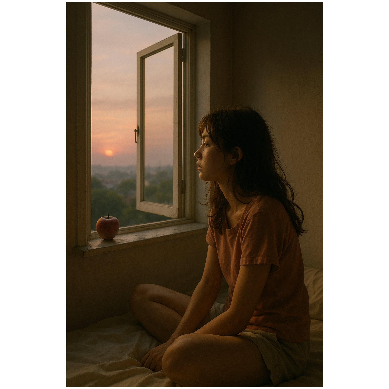 A chill, minimal track expressing the fragile emotions of a single night turning into dawn, when a girl quietly crosses the boundary into adulthood, The mood is subdued and hazy, like the aftertaste of sleepless hours—half dreamy, half real, Vocals are female, breathy and husky, carrying a languid tone that suggests both weariness and quiet achievement, The delivery is understated, almost spoken, leaving feelings ambiguous and open to interpretation, Instrumentation is sparse: a haunting whistle serves as the central melodic voice, airy and fleeting like memory, Drums are sharp and precise, cutting through the haze while keeping a restrained, chill groove, The bassline is repetitive and subtle, grounding without heaviness, The production values silence and space, creating contrast between softness and impact, Emotionally, the sound balances the warmth of becoming with the quiet ache of losing youth, evoking dawn after a long night—fragile yet calm, uncertain yet resolute