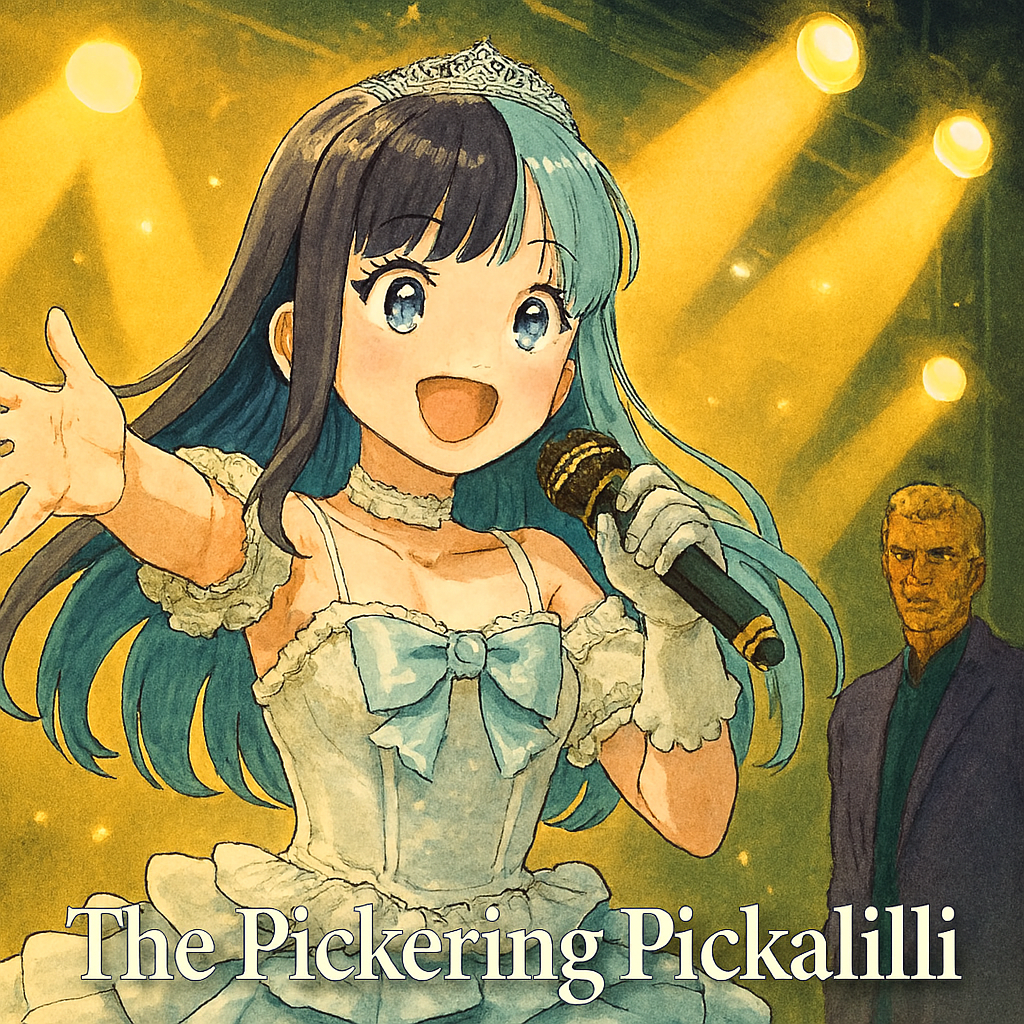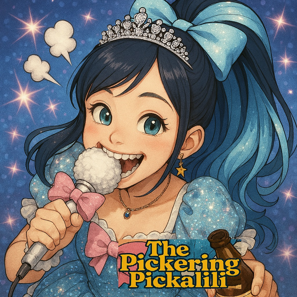 Japanese Vocaloid idol group, chaotic creasy pop, hyper pop glitchcore production, carefree female vocals, sarcastic and irresponsible tone, very energetic, 170 bpm, chant-style chorus, playful shouting, layered harmonies, noisy synths, fun but slightly unhinged vibe