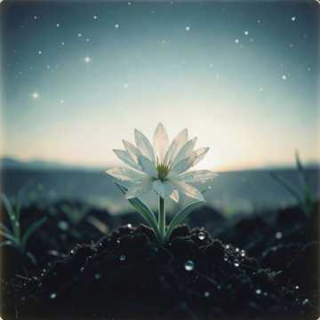 Dark progressive vocal trance, delicate crystalline synths, gentle rising pads, hopeful female harmonies, calm reflective male vocals, subtle organic beats, deep resonant bass, 115 bpm, fragile hope, serene emergence, bittersweet beauty