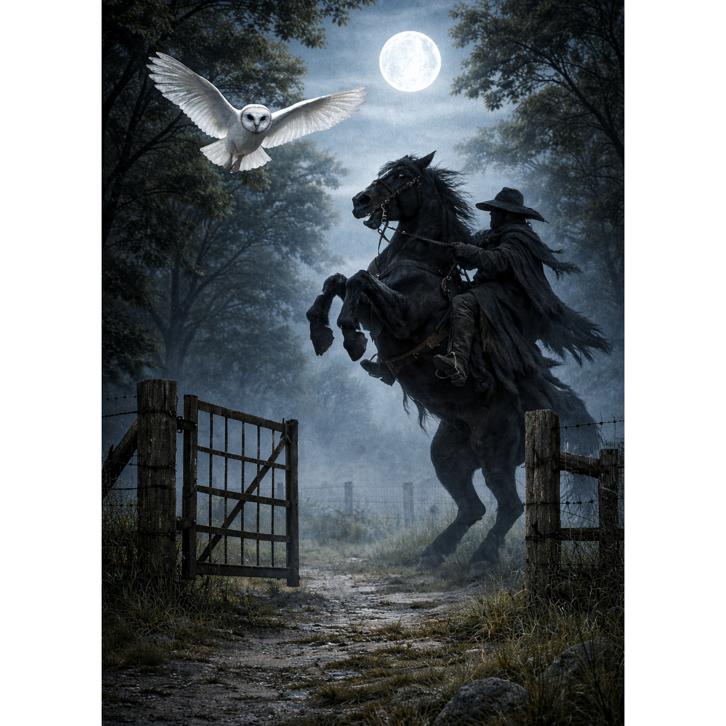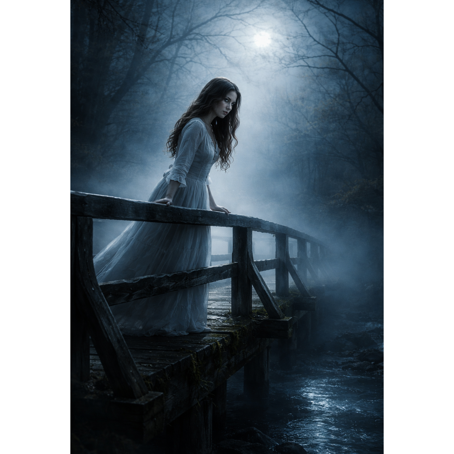 dark American folk ballad with a subtle Gothic touch, The tempo is slow to moderate, following the style of traditional storytelling songs, Fingerpicked acoustic guitar forms the foundation, complemented by banjo or dulcimer to give an authentic Americana character, A fiddle carries mournful melodic lines, especially in the chorus and instrumental interludes, Upright bass or a restrained bass guitar provides earthy depth without weighing the song down, The vocals are narrative, close to the microphone, and emotionally controlled, typical of folk traditions, Subtle sound textures, like wind, creaking wood, or distant footsteps, enhance the legendary and haunting atmosphere