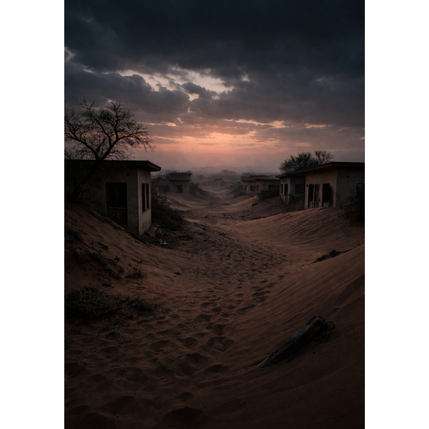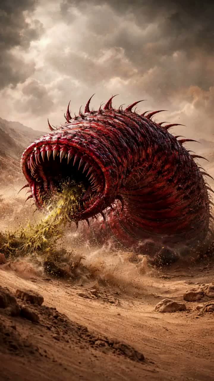 epic cinematic piece, capturing the vastness and mystery of the Gobi Steppe, The intro features Morin Khuur, high flute, and subtle wind and sand sounds, creating an eerie, tense atmosphere, The verses narrate the legend with dramatic, tension-filled instrumentation—acoustic guitar, deep drones, soft percussion, and hints of symphonic metal for power and intensity, The chorus soars with a multi-layered, dramatic choir, reinforced by strings, percussion, and subtle metallic elements, emphasizing the terror of the Mongolian Death Worm, An optional bridge adds Mongolian throat singing (Khoomei) for an otherworldly, haunting effect, The outro revisits Mongolian instruments, letting the melody fade slowly, leaving the sense that the legend still lurks in the dunes, The song is narrative, cinematic, eerie, and dramatic, perfectly evoking the harsh and mysterious desert landscape with a hint of epic metal grandeur