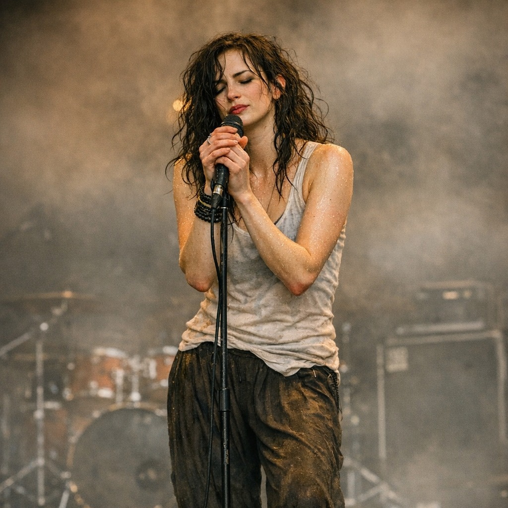 Leiser, dunkler Anfang, Atem, einzelne Glockenschläge, Dann treibender Beat, Bassdruck, steigende Synths, Refrain explodiert mit Crowd-Energie, Wut wird Lebenslust, [Genre: dark folk / atmospheric art-song / poetic minimalist ballad]