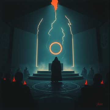 rap, Dark, ritualistic trap beat with heavy low-end and sparse, eerie bells, Male vocals, snarled delivery in the verses with subtle doubled whispers answering key lines, Hook gets wider with stacked chants, distant choirs, and a pulsing bass that drops out on the last bar for dramatic impact, Occasional distorted risers and reverse cymbals to feel like spells twisting in real time