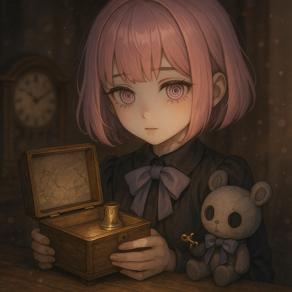 Sections: [Intro] lone music box motif → [Verse 1] felt piano and brushed kit → [Refrain 1] fragile high string and hush hook → [Verse 2] closer vocal and low bass throb → [Refrain 2] fuller string halo, soft harmonies → [Bridge] clock tick and breath lift, wind-up foley → [Final] hush reprise and single box note → [End]