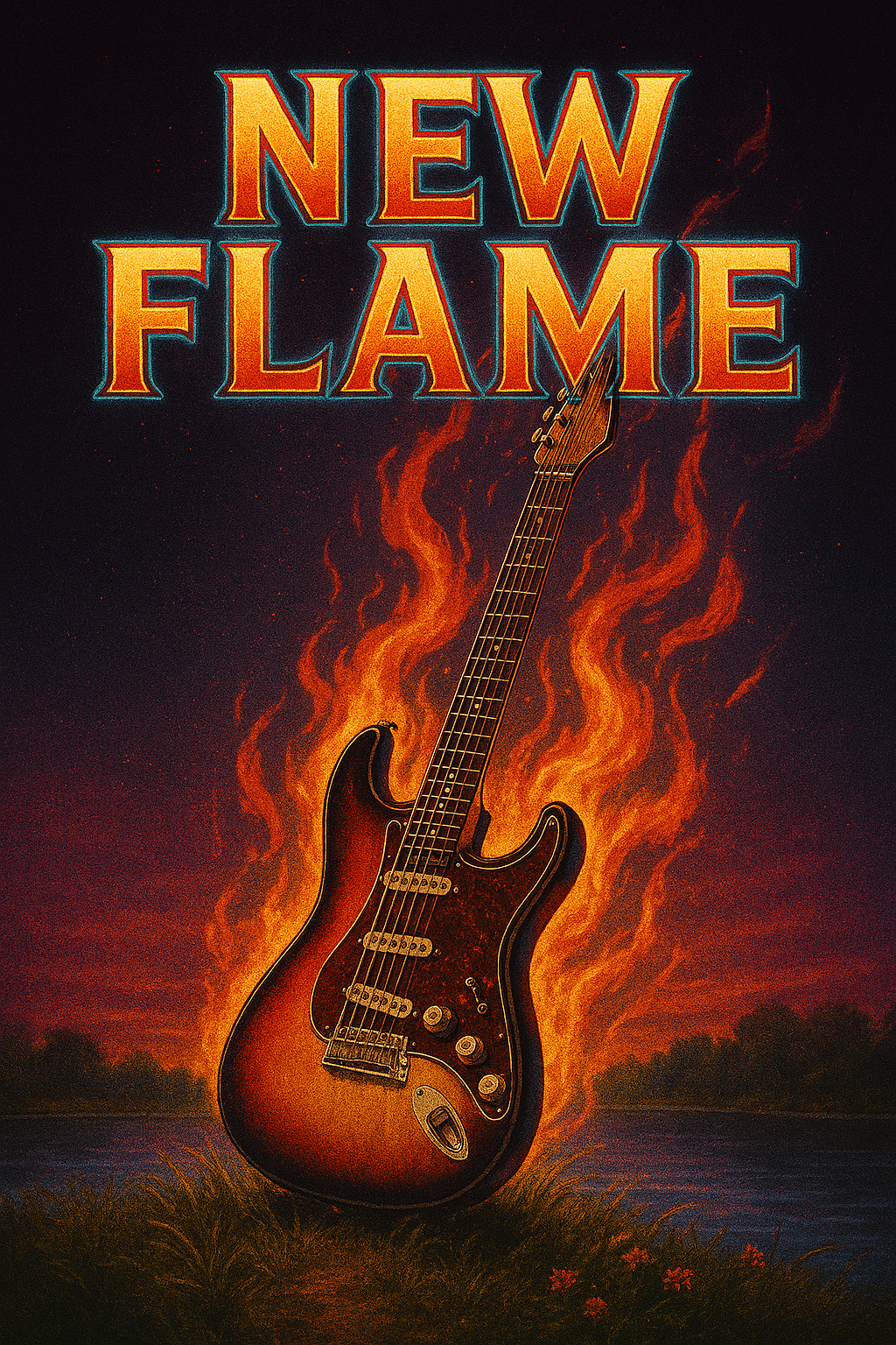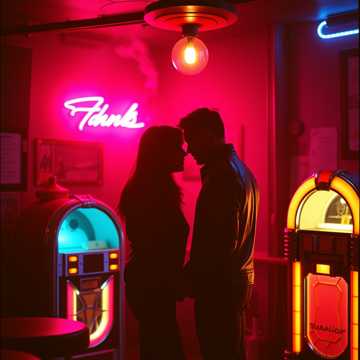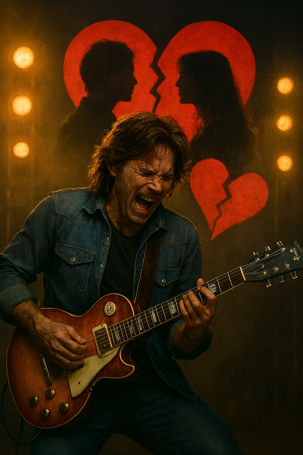 Sing in a melodic, bright, classic 80s rock style, Use electric guitars with anthemic riffs, driving drums, and a powerful mid-tempo groove (110–120 BPM), Verses should be sung with a storytelling tone, warm and engaging, drawing the listener into the cantina scene, Pre-chorus should rise in intensity, with brighter timbre and emotional anticipation, Chorus must be bold and soaring, using strong chest voice, sustained notes, and passionate delivery to capture the joy of falling in love, Bridge should feature heightened emotion, leading into a guitar solo, then resolve with a triumphant vocal line, Express passion, nostalgia, and excitement through dynamic shifts: softer tones in verses, powerful resonance in chorus, occasional falsetto for tenderness, Convey the feeling of a timeless love story born on the dance floor of a cantina, making the listener relive that first spark of romance