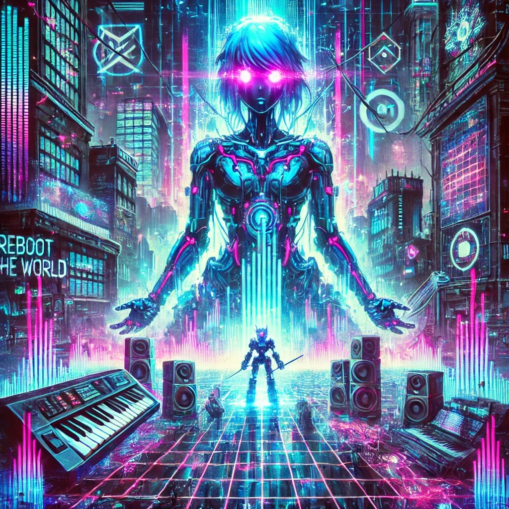 vocaloid, vocaloid, robotic vocals, synthesized vocals, pitch shifted vocals, dark electronic, cyberpunk, glitchcore, j-rock