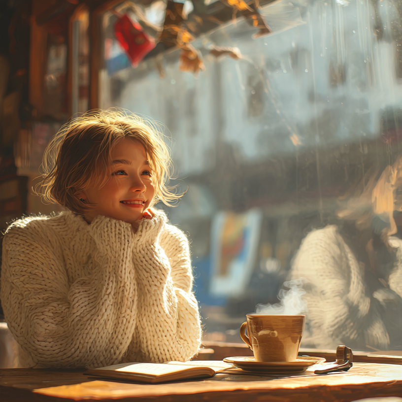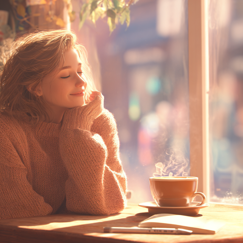 jazzy acoustic pop with soft vocals, brushed drums, warm upright bass, lo-fi textures, and cozy café ambiance – sweet, nostalgic, and laid-back mood