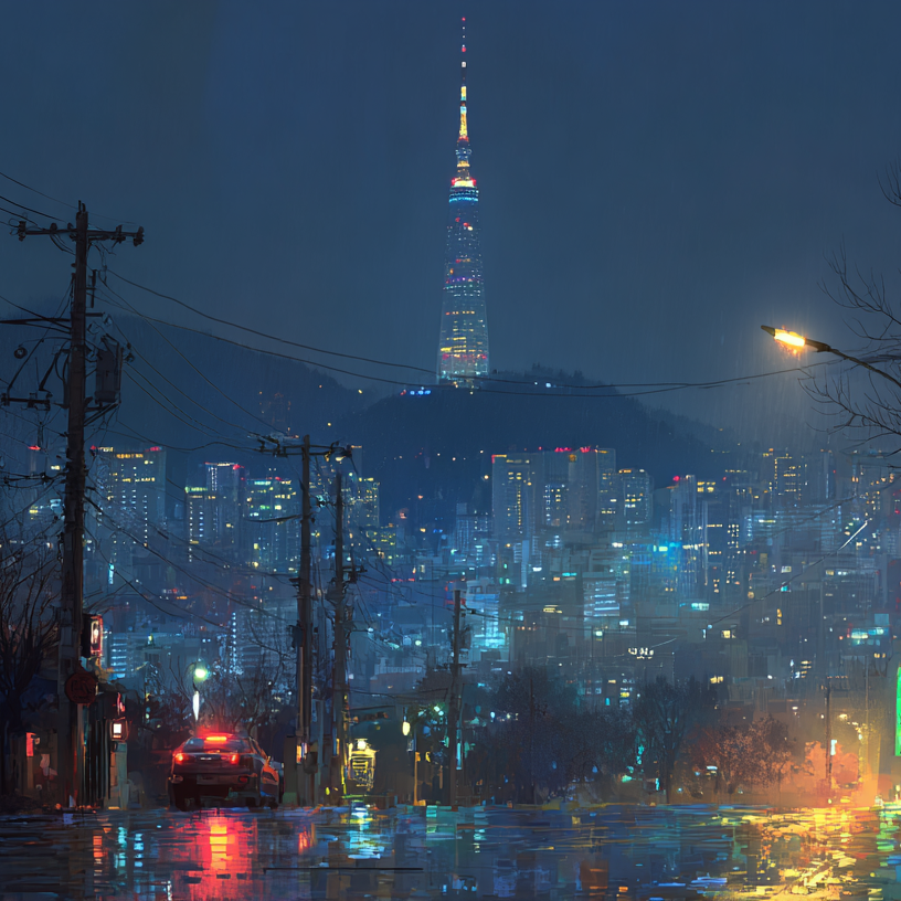 Emotional pop ballad with soft piano, mellow acoustic guitar, and gentle beats, Warm vocal tone with urban night atmosphere, subtle synth layers, and a dreamy yet intimate city vibe, Tempo: 78~82 BPM