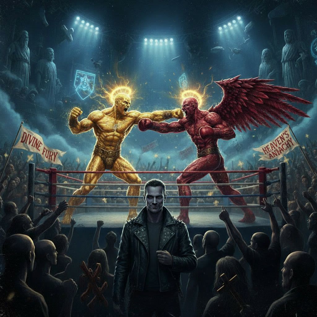 Sound: Tight and rhythmic with a punchy mix — bass and drums dominate the groove, guitars shimmer and echo in the background, Vocals are dry, centered, and commanding, Vibe: Feels like a sermon shouted from a cold concrete stage — a crowd chanting “My God is Stronger Than Yours!” in a post-industrial city square