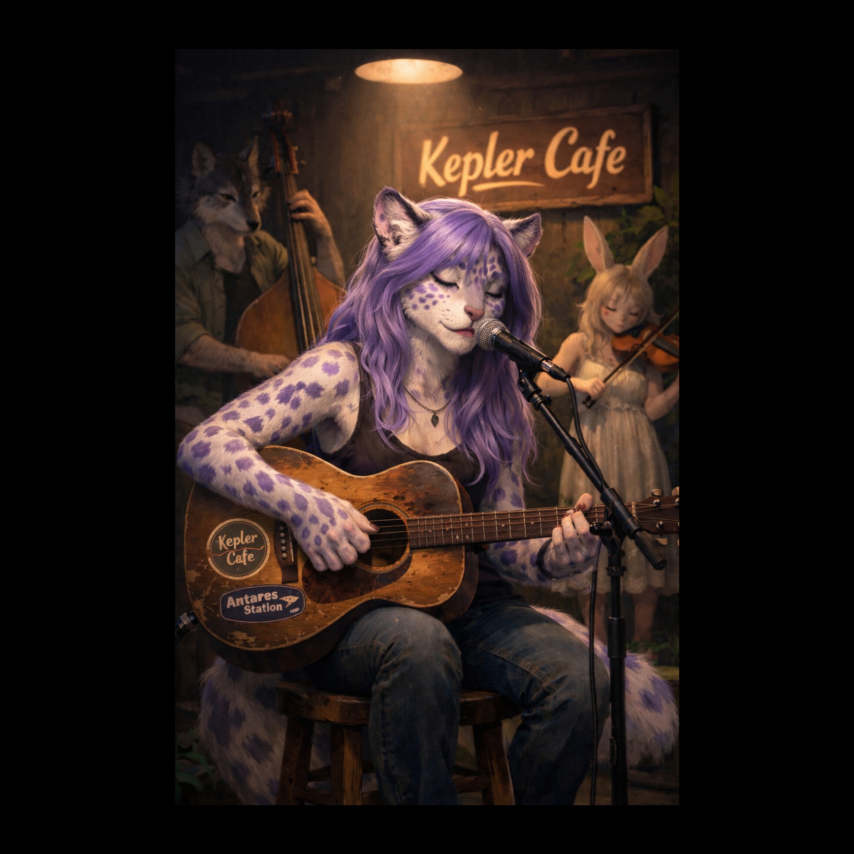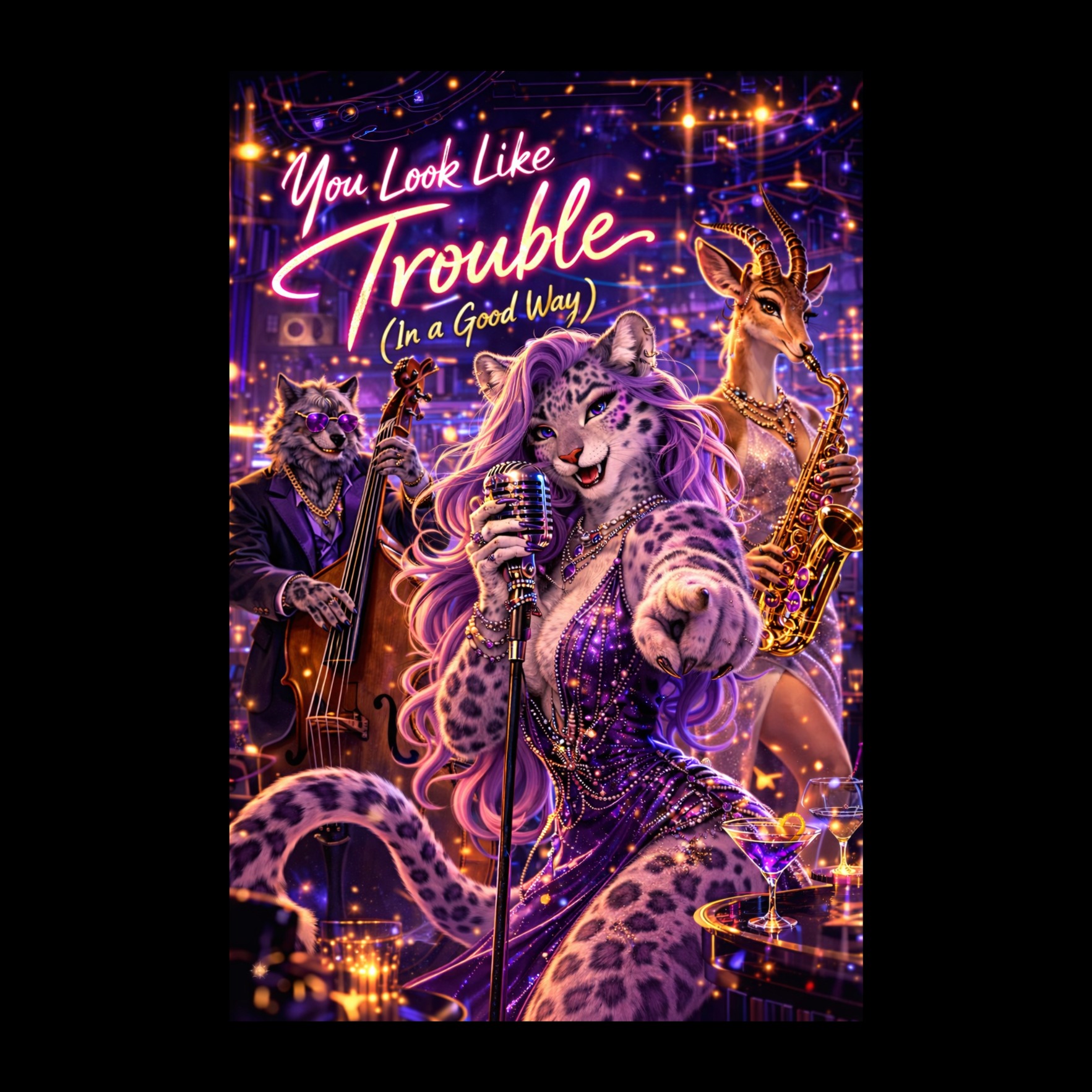 upbeat smoky jazz lounge, playful cabaret jazz, live nightclub energy, finger snap groove, stylish torch-pop attitude, confident feline starlet energy, sultry throaty female vocal, witty playful phrasing, charismatic hostess vibe, upright bass bounce, brushed drums with snap, punchy piano stabs, slick sax riffs, warm brass accents, call and response horn phrases, catchy chorus, dancefloor invitation energy, mischievous glamour, classy fun atmosphere, live at the Kepler Club, organic performance, human timing, vibrant momentum, ‑slow ballad, ‑applause, ‑dragging tempo, ‑happy swing cheese, ‑goofy jazz, ‑cartoon vocals, ‑broadway style, ‑musical theatre, ‑big band overload, ‑loud brass wall, ‑crowd overpowering, ‑stadium ambiance, ‑applause breaks, ‑excessive audience noise, ‑glossy pop polish, ‑commercial radio sound, ‑edm, ‑trap, ‑hip hop, ‑rap, ‑dubstep, ‑synthwave, ‑autotune vocals, ‑choir, ‑backing choir, ‑male lead vocal, ‑duet equal vocal, ‑distorted guitar, ‑rock guitar, ‑metal guitar, ‑lo-fi mud, ‑long silence breaks, ‑fake ending, ‑sleepy mood, ‑sad ballad