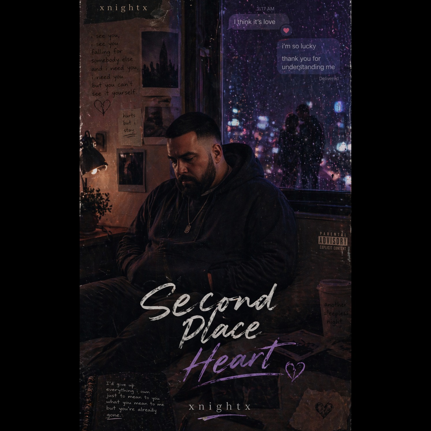 lo-fi hip hop, cloud rap, sad rap, soft whispery male vocals, simple clean acoustic guitar loop, extremely minimal production, slow trap beat, barely audible 808 bass, very subtle hi-hats, almost no drums, hushed and intimate, melancholic, emotionally raw, sparse arrangement, vocals front and center, guitar plucked not strummed, dreamy and hazy, slow tempo, heartbreaking, quiet and delicate, muffled lo-fi texture, soft layered vocals, no full band, no heavy instruments, stripped to almost nothing, late night sadness, gentle and aching, emotionally vulnerable male voice, barely produced, raw and exposed feeling