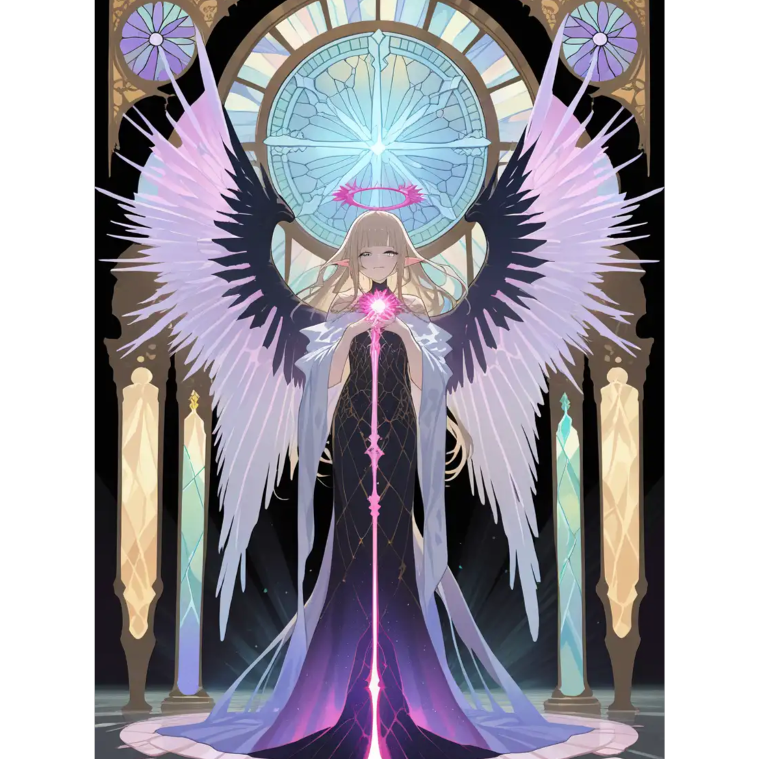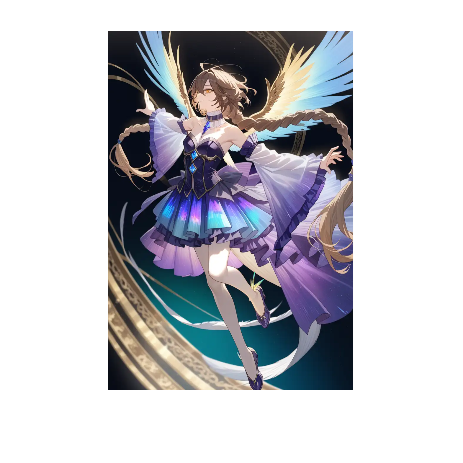 Ethereal dreamy fantasy, operatic vocal style, slow meditative tempo, piano harp pads strings, bilingual duet Japanese female / English male, legato, expressive, floating aura pillars, mystical shimme