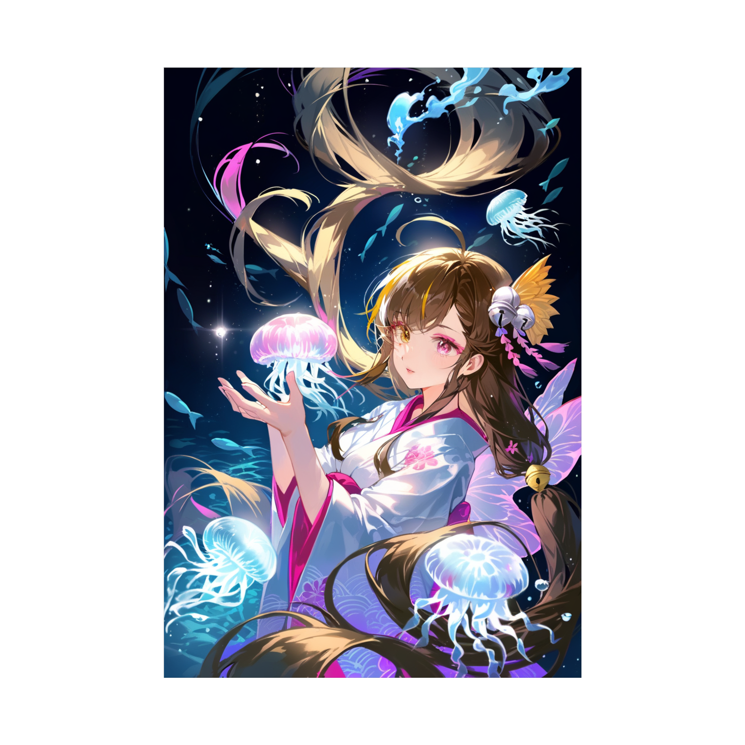Fast K-POP with traditional Japanese instruments, fragile yet powerful, ethereal vocals, deep-sea atmosphere, luminous and emotional