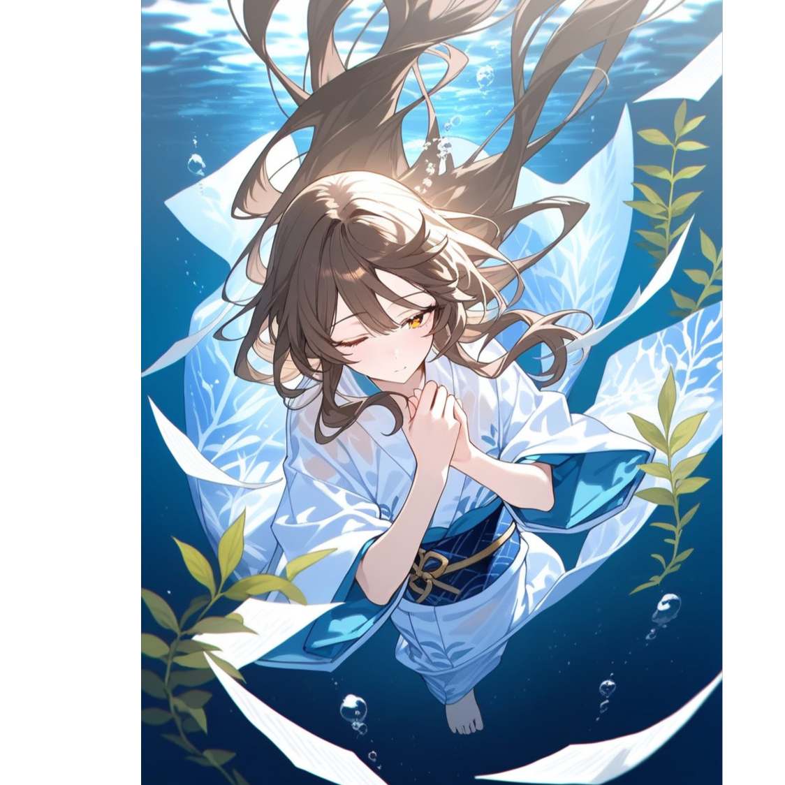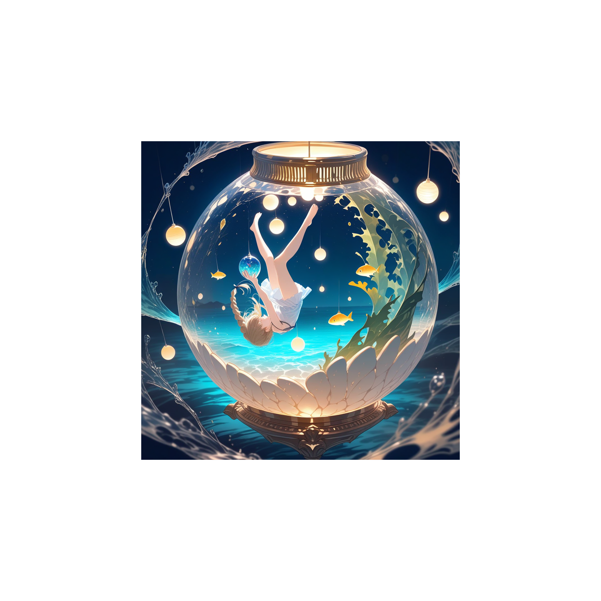 Dream Pop × Ambient, healing female vocal, slow 70 BPM, airy synth, harp, piano, underwater SFX, fragile yet soothing deep-sea mood