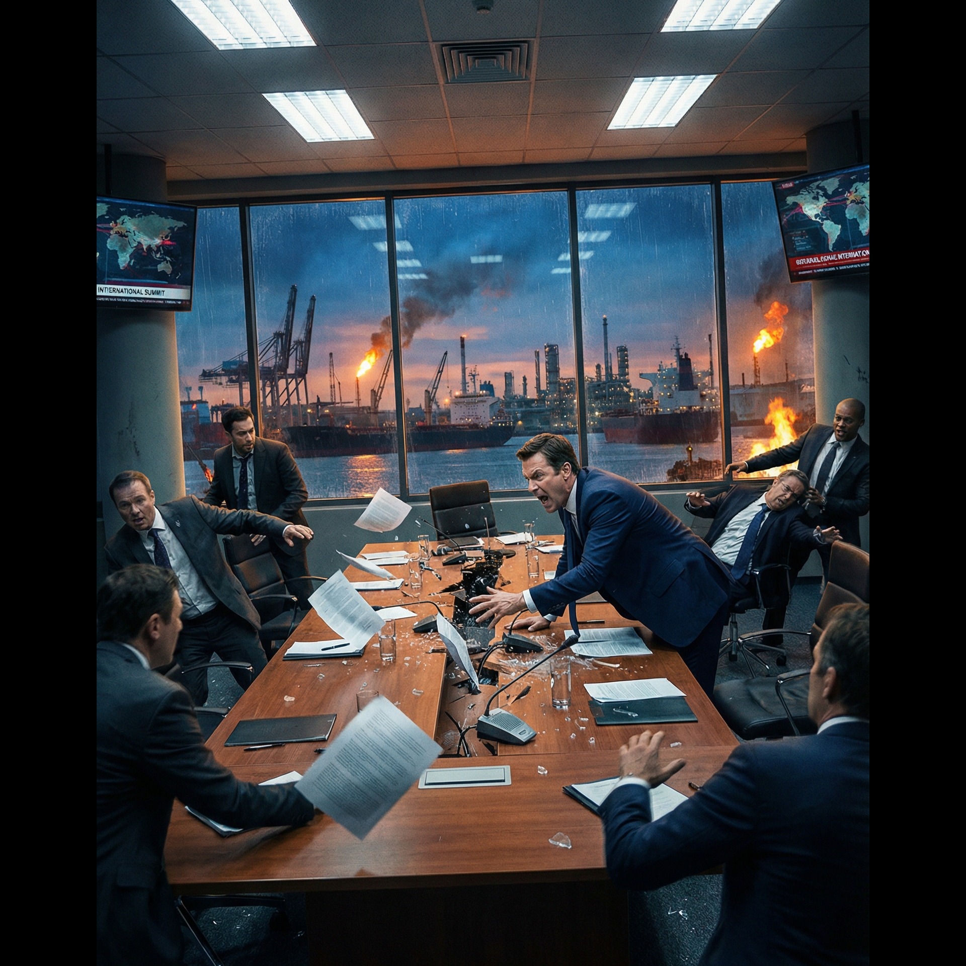 Realistic News Broadcast, Voice-over Narration, Professional News Anchors, Cold Monotone Reporting, Neutral Delivery, High-Pass Filter, Radio Compression, Emergency Alert System (EAS) Tones, Background Studio Ambience, Typing Sounds, Paper Shuffling, Static Glitch, Multilingual, Cold Cinematic Atmosphere, ‑music, ‑dramatic delivery