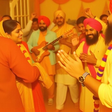 vibrant percussion with harmonium melodies weaving through a festive atmosphere, rhythmic, traditional punjabi